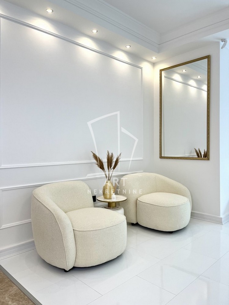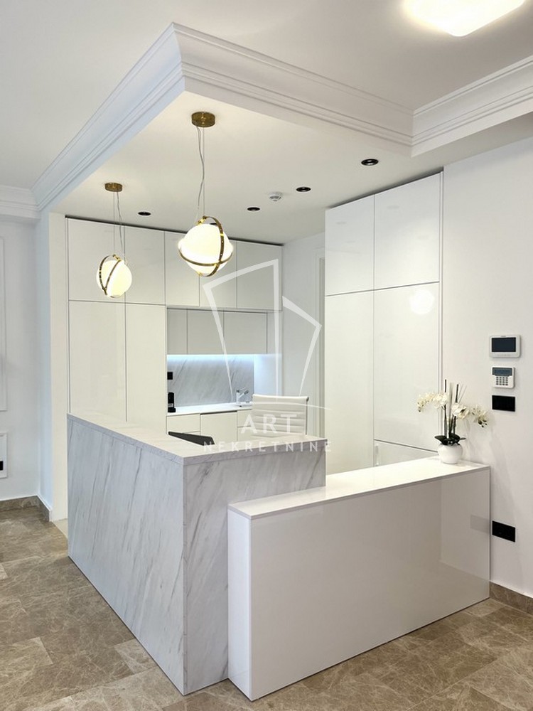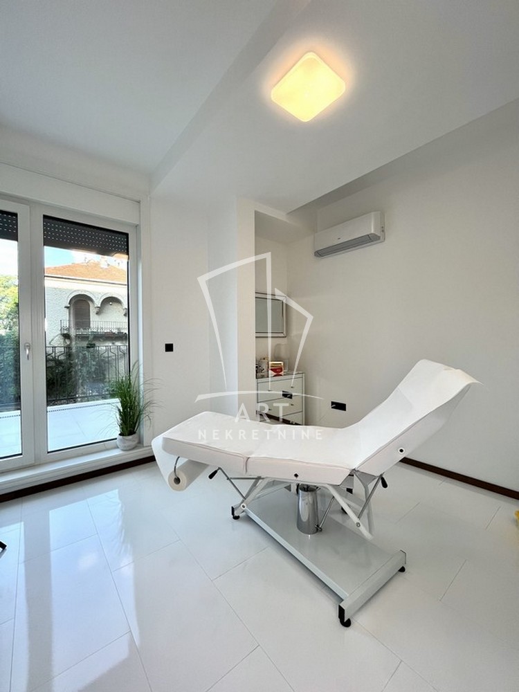 - Sterilna zona, prijemni deo - recepcija sa salonom- savremeni nameštaj, dva kupatila, dva toaleta, ostava i velika terasa sa dvoristem