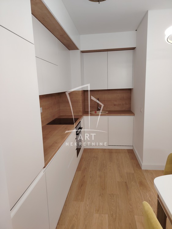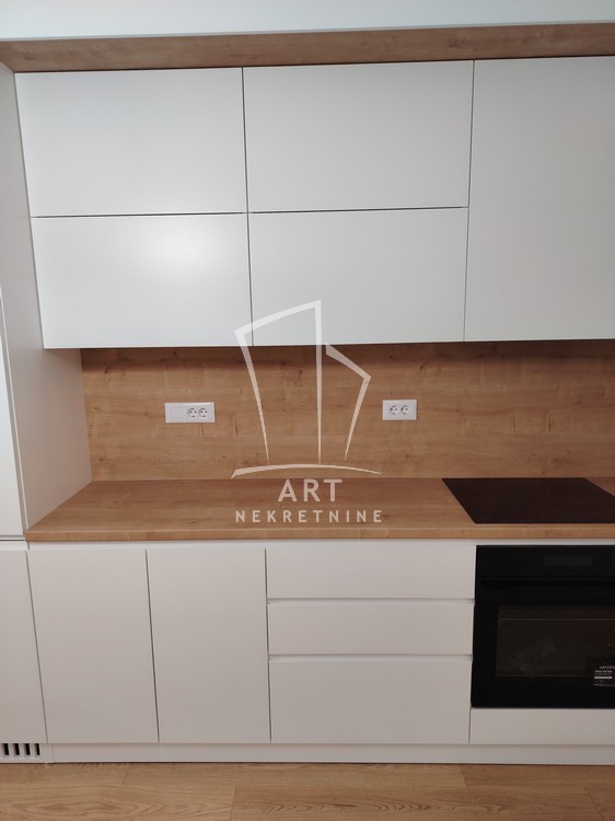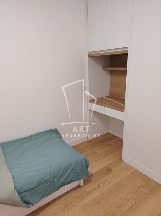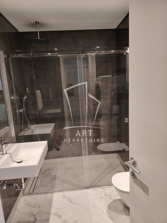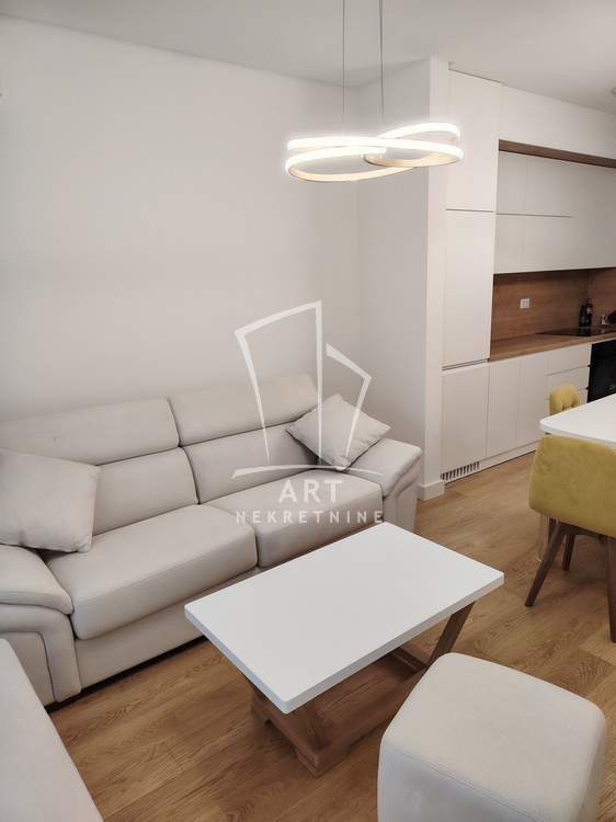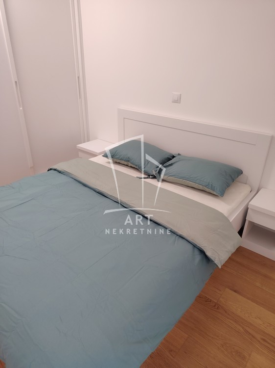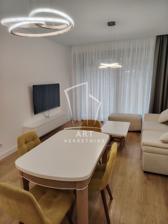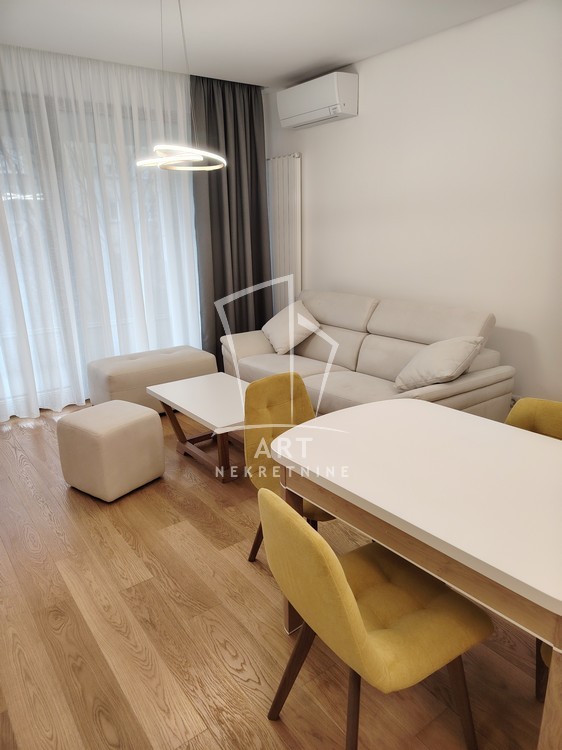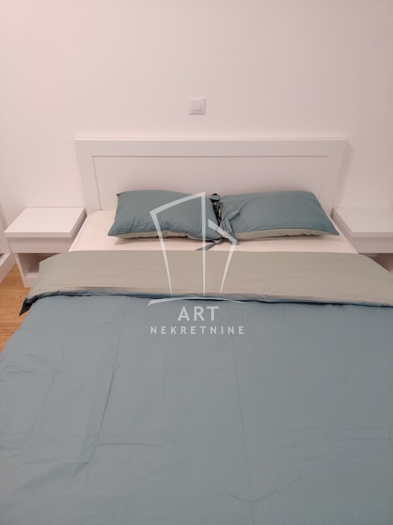 Kompletno namešten stan, sve novo, u ekstra luksuznoj zgradi, stan nije još bio useljavan, ima 2 manje spavaće sobe (funkcioniše kao 2.5), postoji mogućnost iznajmljivanja garaže.