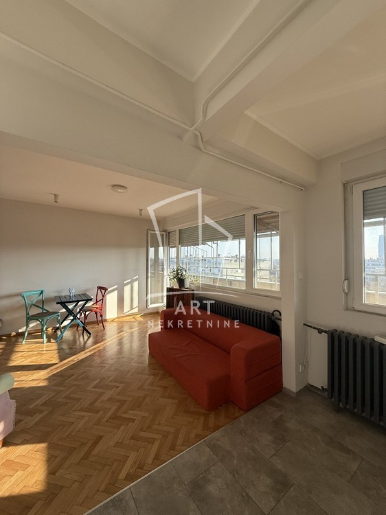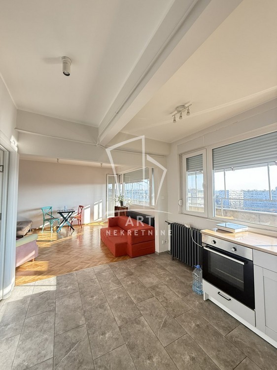 Stan je open space koncepta. Celom dužinom stana se nalaze prozori sa predivnim pogledom na grad.