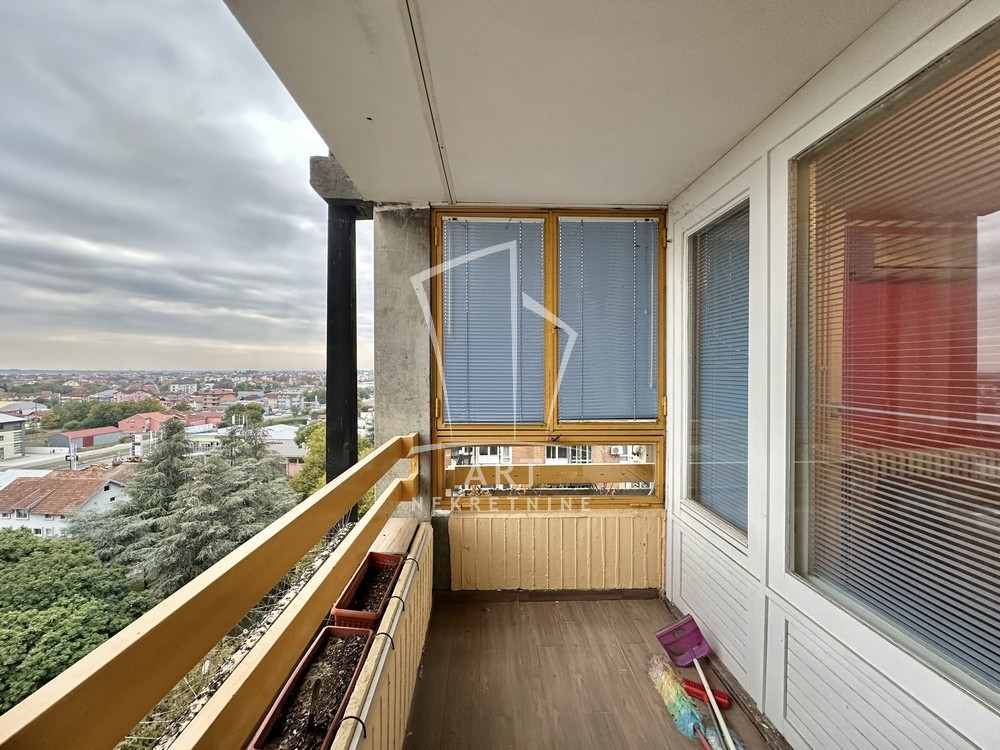 Stan je odličnog rasporeda i strukture i izuzetno je funkcionalan kao i potencijalno adaptibilan. Nalazi se na 9 spratu i ima fantastičan pogled. Veoma je komforan, svetao je i sjajno orijentisan. Sastoji se od hodnika, kupatila, ostave, dnevnog boravka, odvojene velike i prostrane sobe, kuhinje, lodje i terase. Nalazi se na mirnoj i lepoj lokaciji okružen zelenilom kao i pripadajućim velikim parkingom. U samom naselju se nalaze vrtići, škole, lanci supermarketa, parkovi, kao i autobuska stajališta za mnogobrojne linije gradskog prevoza. Veoma retko u ponudi i apsolutno za svaku preporuku!