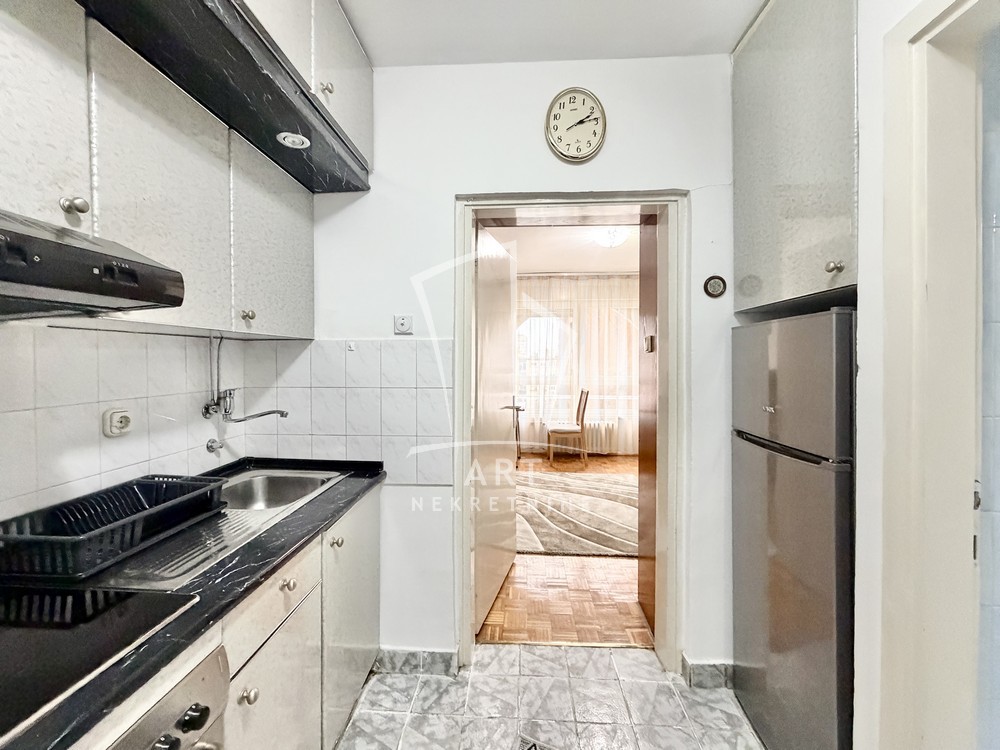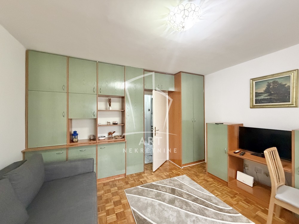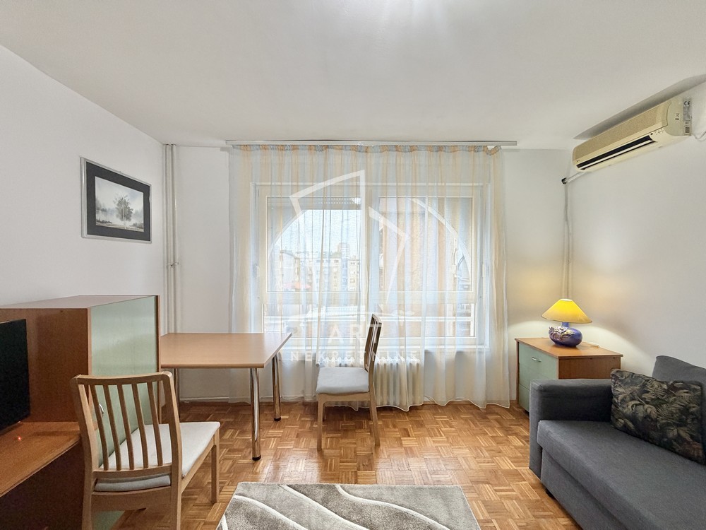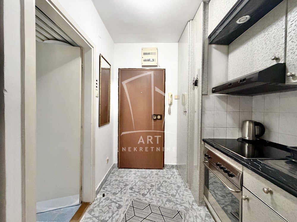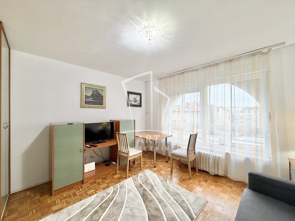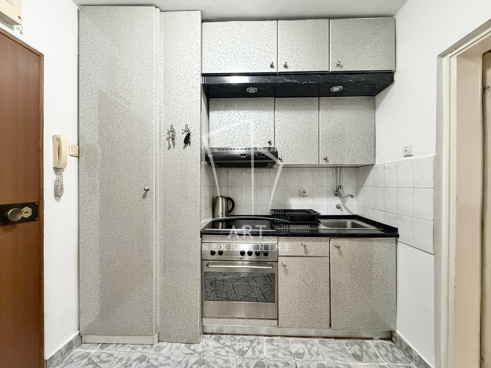 U centru grada, ali u mirnoj ulici, garsonjera površine 25m2, opremljena, na 6. spratu novije zgrade, ima lift.