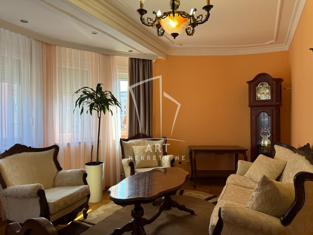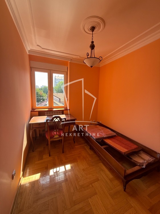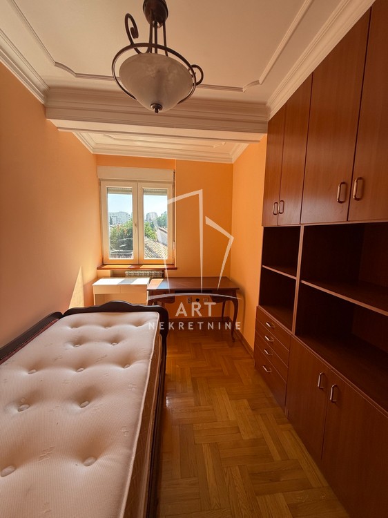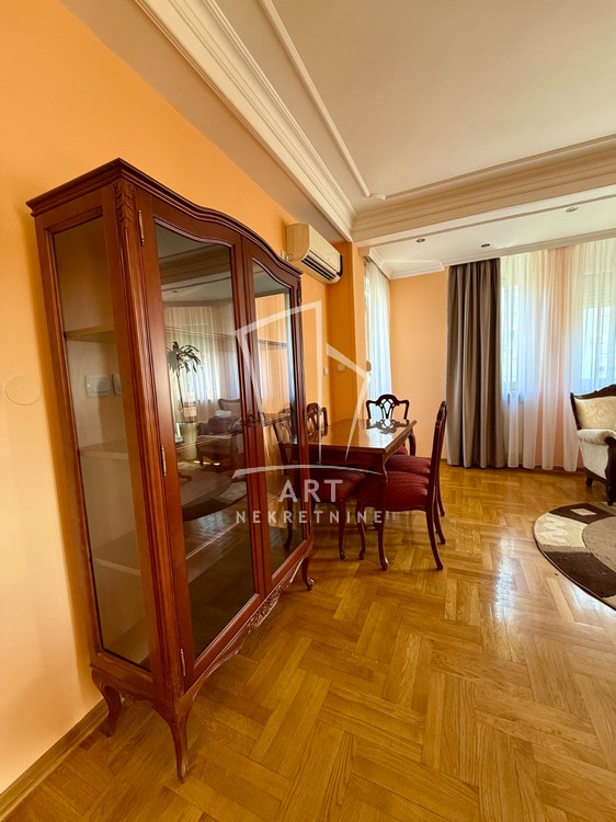 Izdaje se prelep, prostran četverosoban stan na odličnoj lokaciji, u blizini Bulevara Kralja Aleksandra. Dugačak hodnik, 3 spavaće sobe, dnevna soba, prostrano kupatilo, kuhinja i terasa čine ga idealnim za porodice. Opremljen je stilskim nameštajem i ugradnim plakarima. Od kućnih uređaja, ima šporet, frižider, sudomašinu i klimu. U svakoj sobi su obezbeđeni priključci za TV.