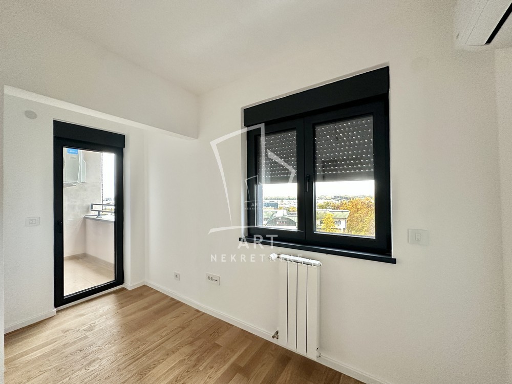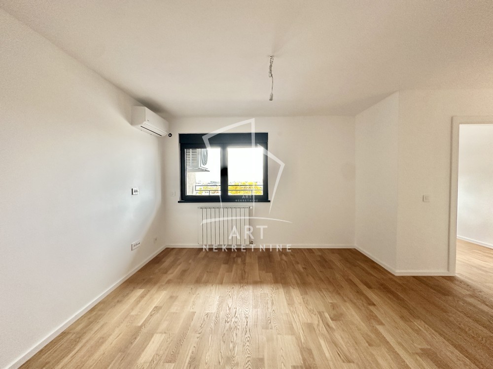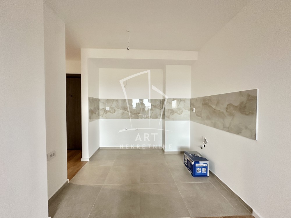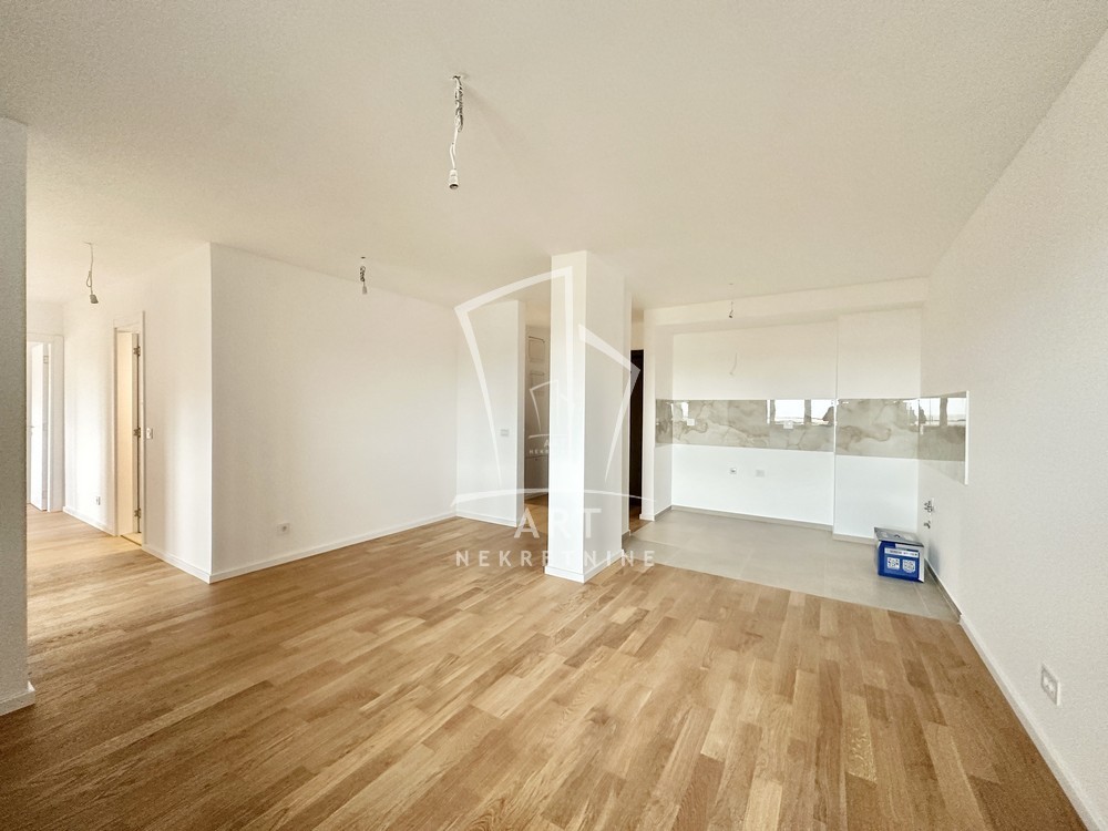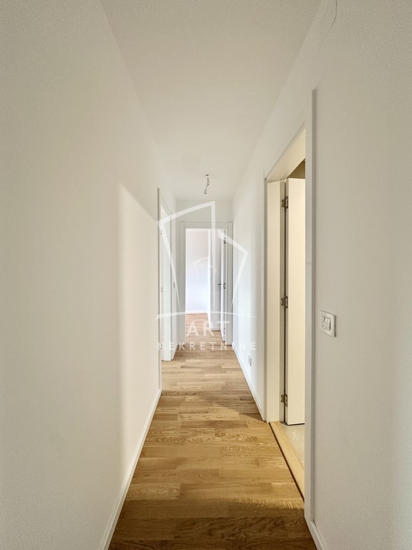 Prostor se sastoji iz ulaznog hodnika, dnevnog boravka sa trpezarijom i kuhinjom, spavaće sobe i manje dečije/radne sobe, dva kupatila i terase.