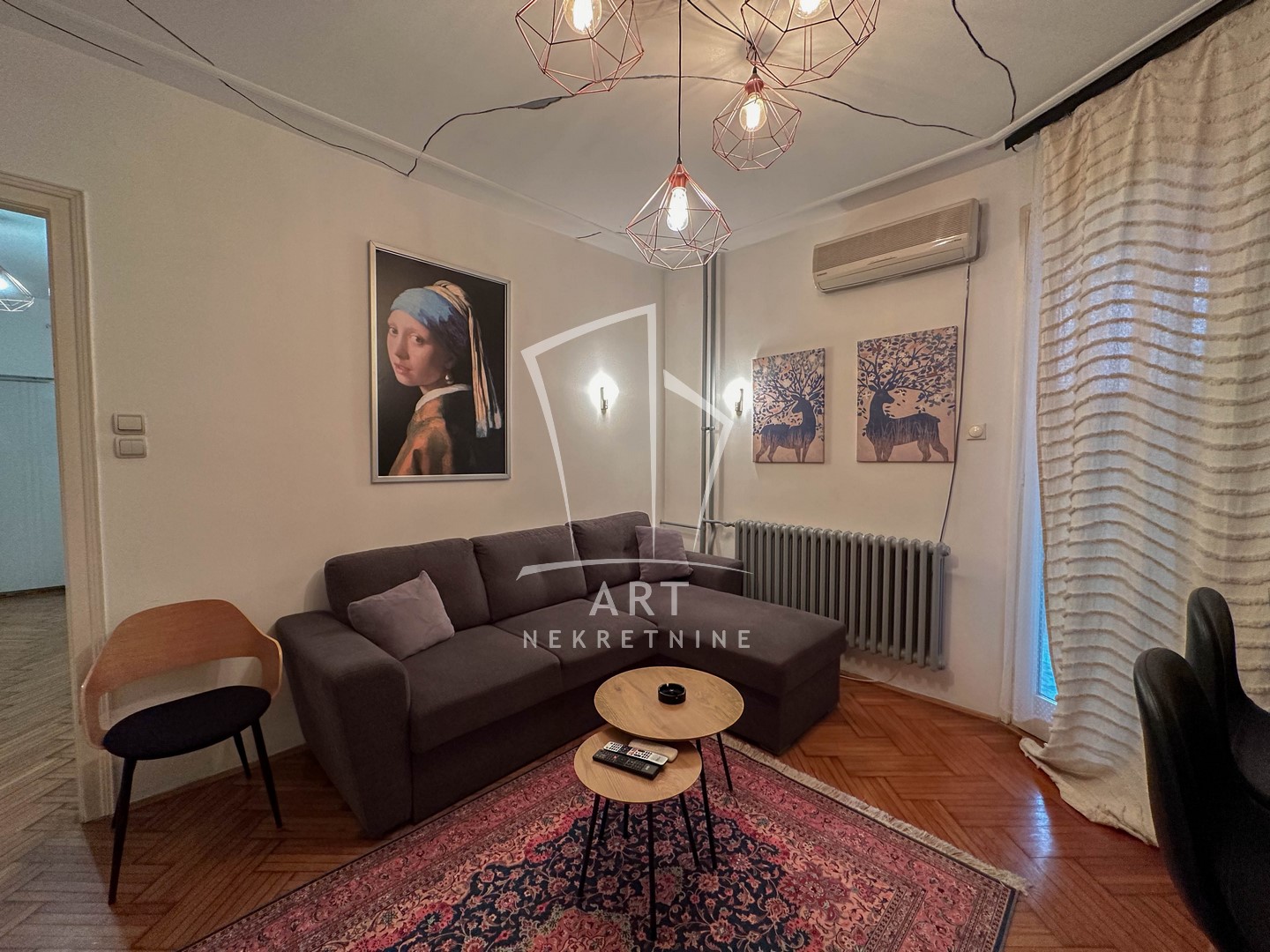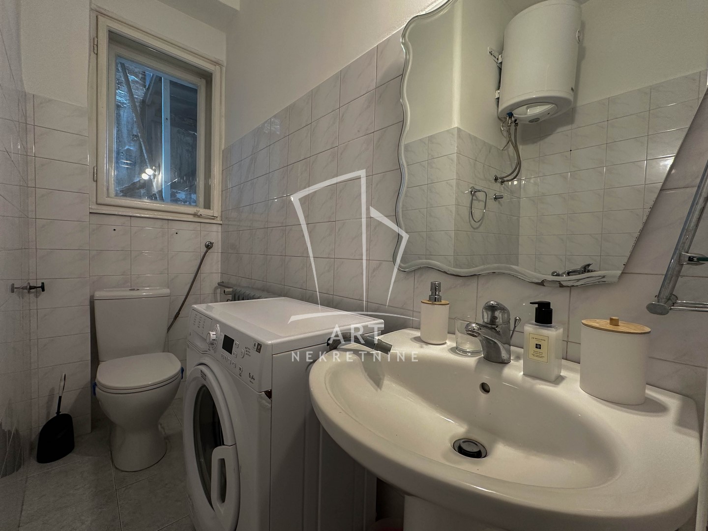 Renoviran stan, namešten, mereno 50m2, velika natkrivena terasa sa pogledom na dvorište, CG, lift, 2 klime (jedna u kuhinji i druga u sobi), internet, interfon.