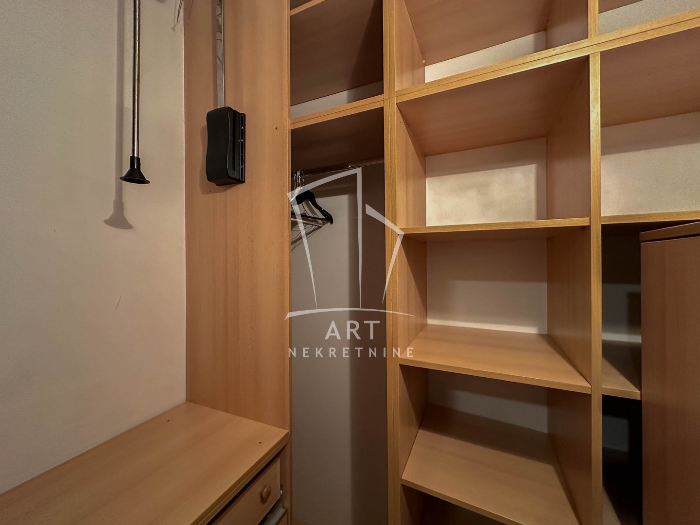 Stan od prostorija ima: hodnik, posebno odvojenu kuhinju sa trpezarijom, veliku sobu sa izlazom na terasu (12m2) koja je natkrivena i gleda na dvorište zgrade, prostrano kupatilo i posebnu ostavu za garderobu.