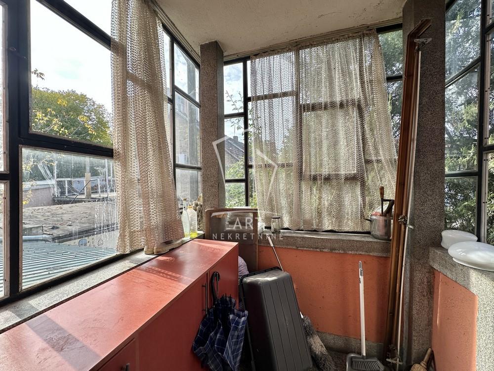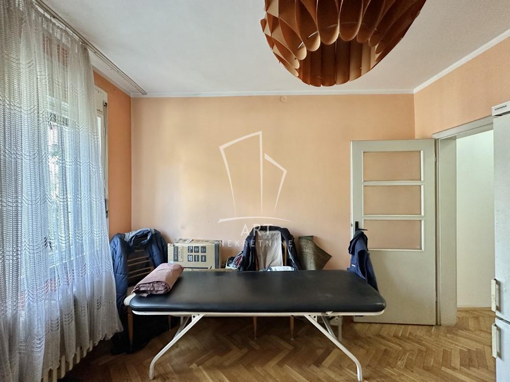 Sastoji se od trosobnog stana na vpr-u od 75m2 (grejne površine) i jednoiposobnog stana u polusuterenu površine 33m2, cg-priključena na gradsku toplanu, podrum, ostava, parking.