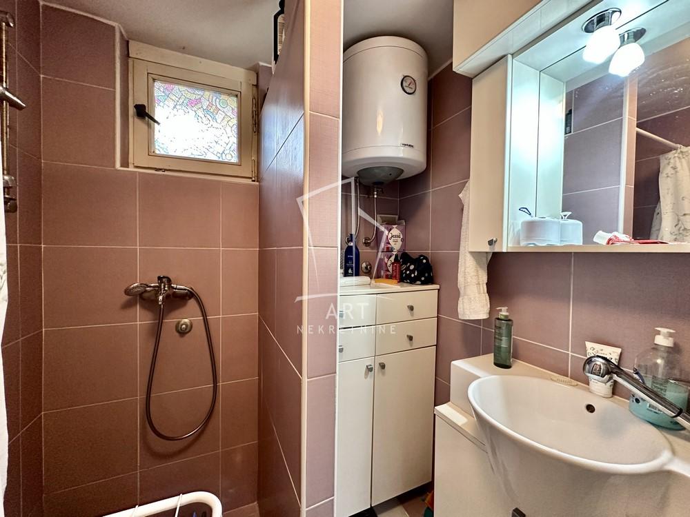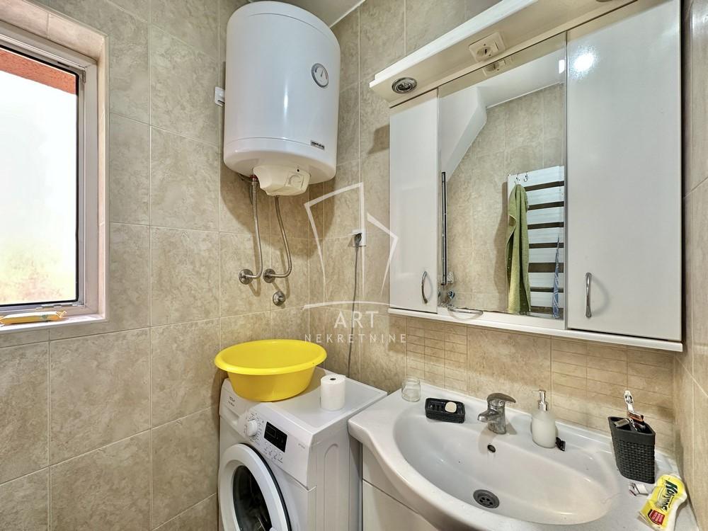 1.5 stan : mala kuhinja, dnevna soba sa trpezarijom, odvojena spavaća soba, kupatilo i predprostor u kome se nalazi mašina za pranje veša.