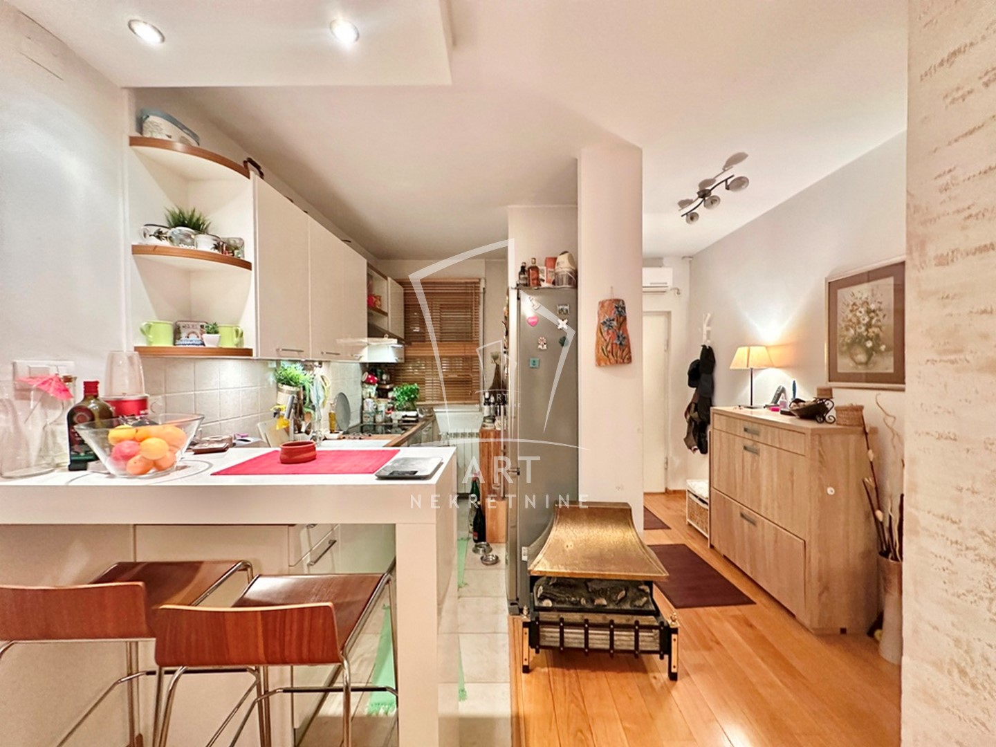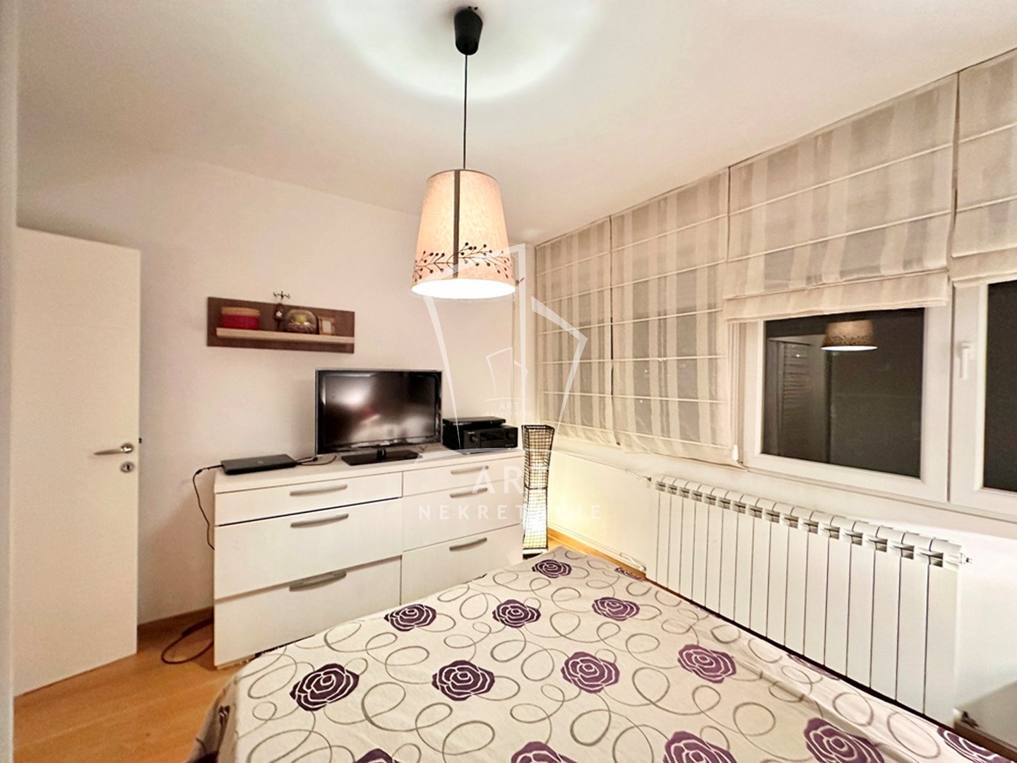 Sastoji se iz ulaznog dela, dnevne sobe sa kuhinjom i trpezarijom, dve spavaće sobe, kupatila i terase. U stanu ostaje cela kuhinja sa svim elementima. Uz stan ide mogućnost korišćenja ostave na spratu.