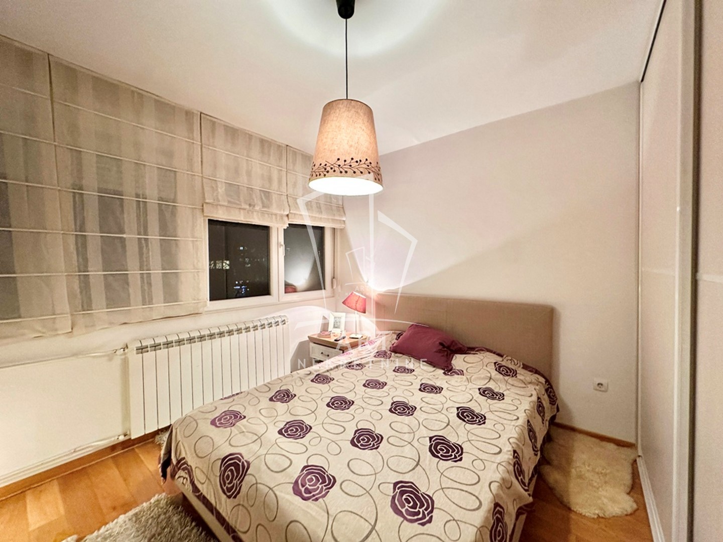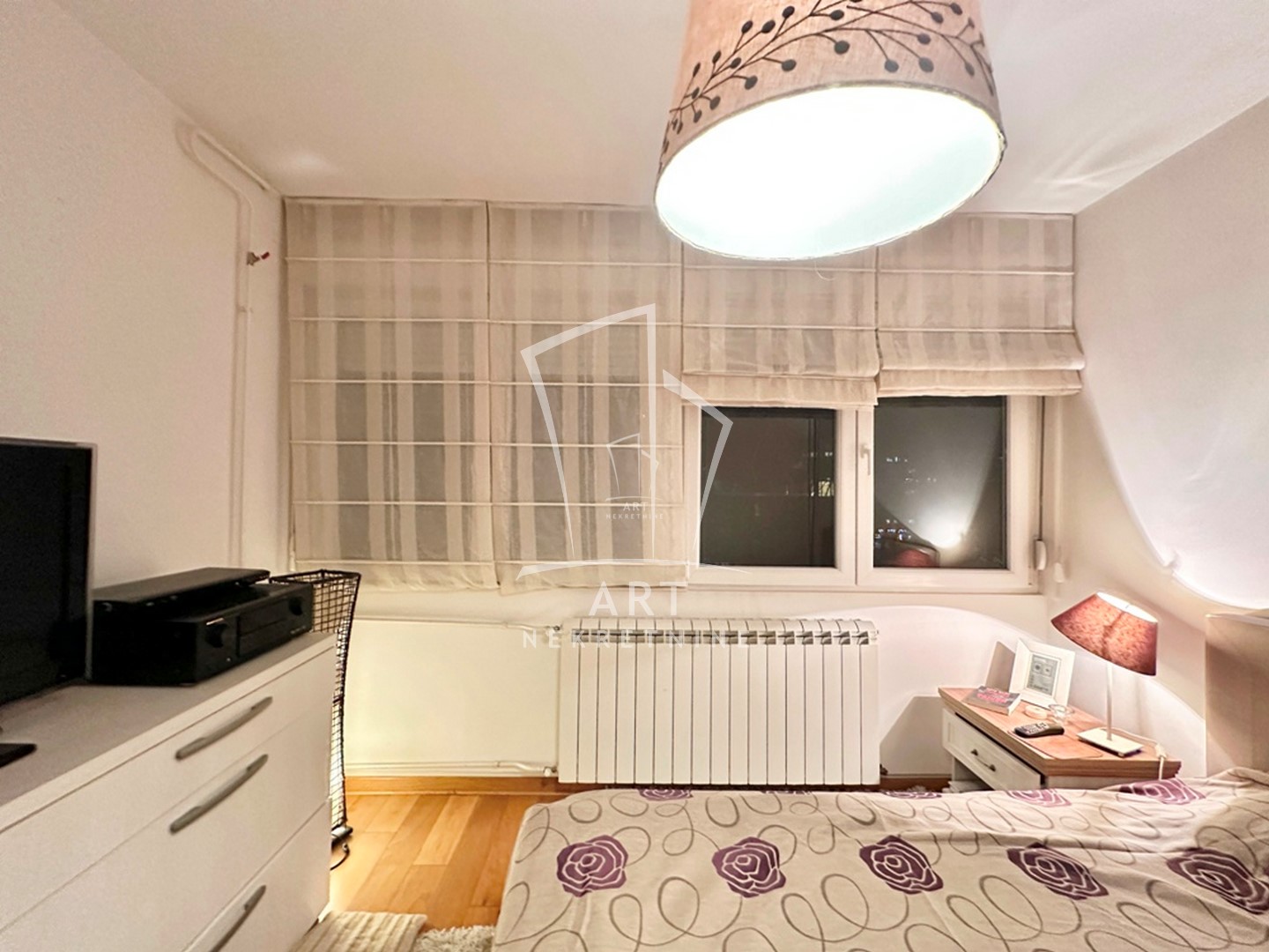 Zastupamo prodaju uknjiženog, trosobnog i renoviranog stana u dobro poznatim ,,kockicama'. Nalazi se na granici Zemuna i Novog Beograda kod nekadašnjeg hotela Jugoslavija i u blizini Zemunskog keja. Nalazi na poslednjem spratu zgrade od 5 spratova sa liftom, održavana, ulaz je sređivan takođe. Stan je renoviran kada je useljen pre 10ak godina kompletno uključujući i sve instalacije. Rađena je i izolacija krova. Dvostrane orijentacije, prirodno osvetljen. Grejanje je centralno.