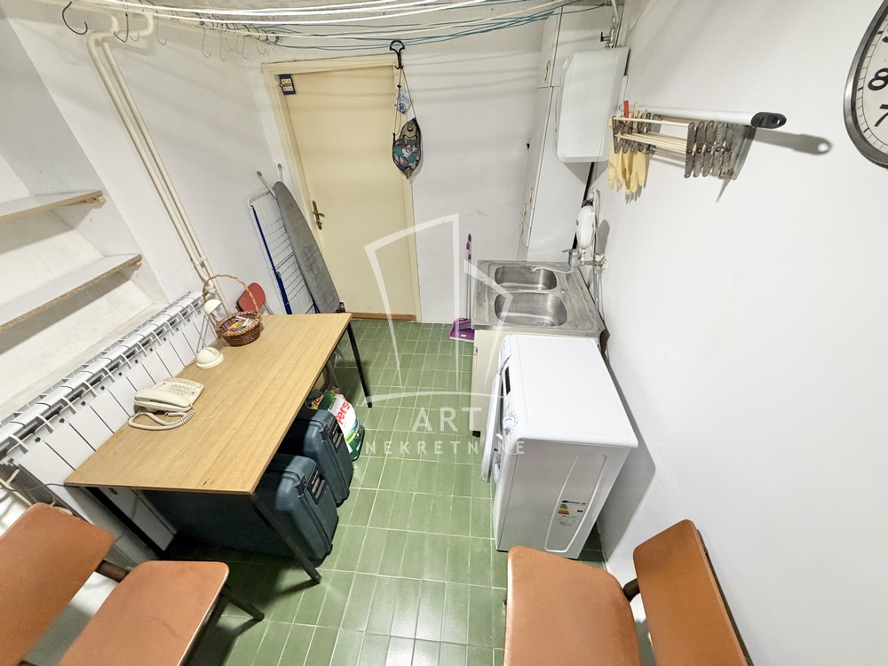 Smešten je na visokom prizemlju zgrade od 2 sprata, sa mogućnošču da se koristi i dvorište.
