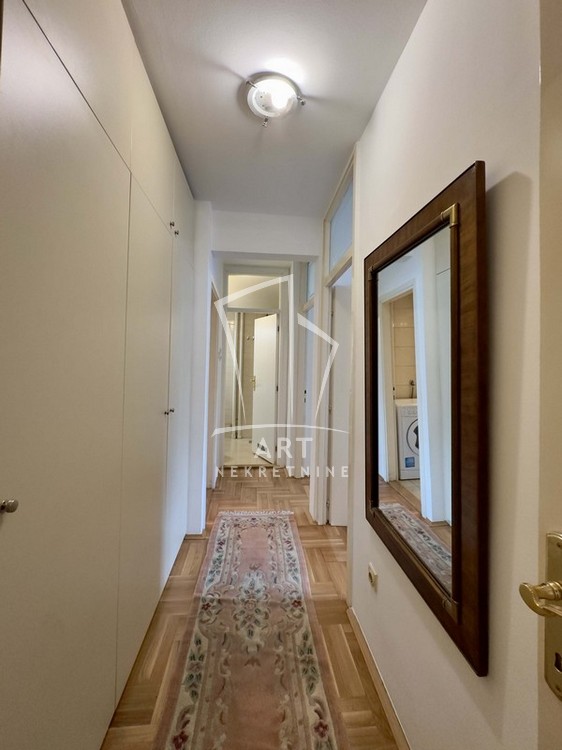 Prostorije: predsoblje, kuhinja, trpezarija, dnevna soba, terasa, 2 spavaće sobe, toalet, kupatilo.