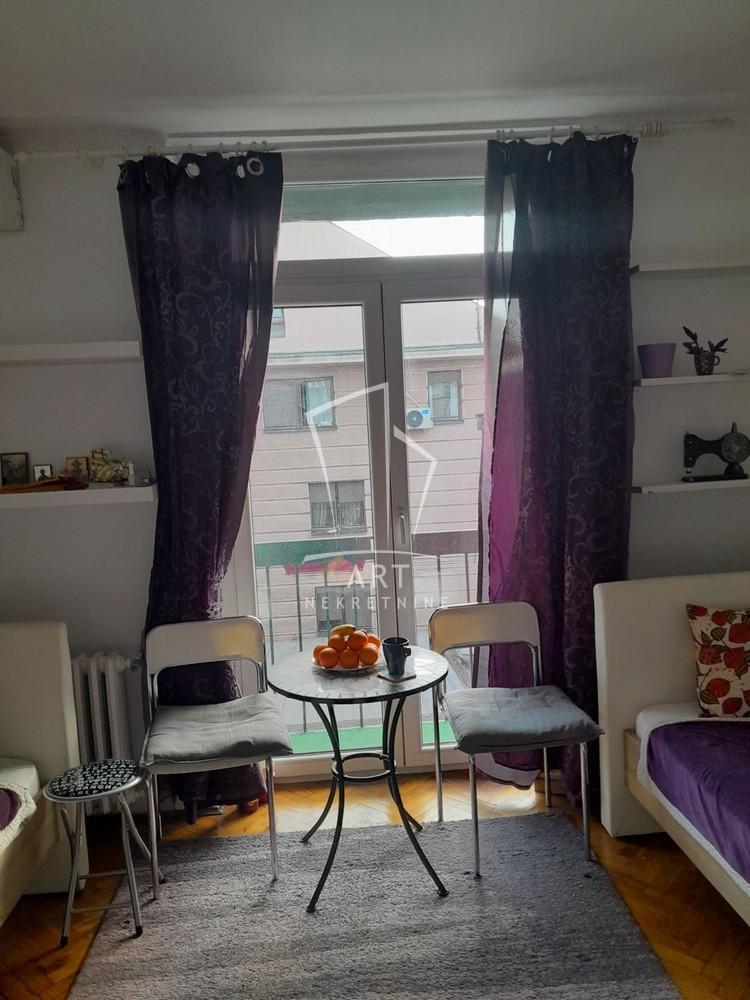 Savski venac ulica Resavska, blizina Kliničkog centra, garsonjera 22m2 + terasa, na petom spratu od 7, sa centralnim grejanjem i liftom.