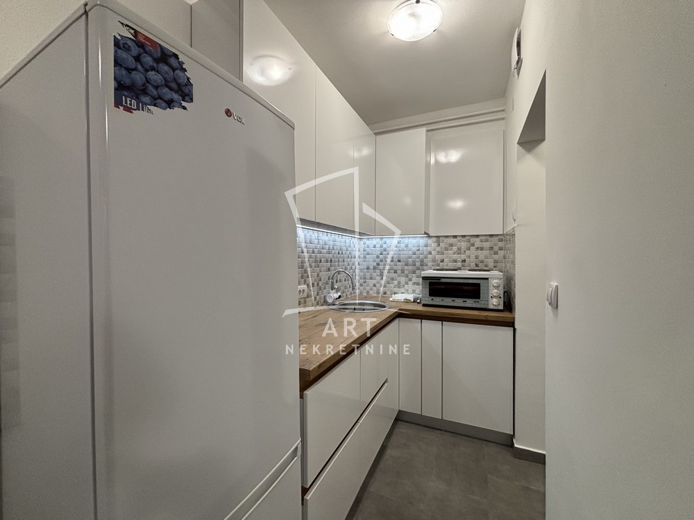 Stan je svetao i funkcionalan, moderno namešten i spreman za useljenje. Dodatna prednost je mala ostava ispred stana, kao i zajednička prostorija sa terasom koju deli sa samo jednim stanom, što pruža dodatni komfor i privatnost.