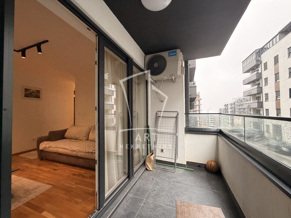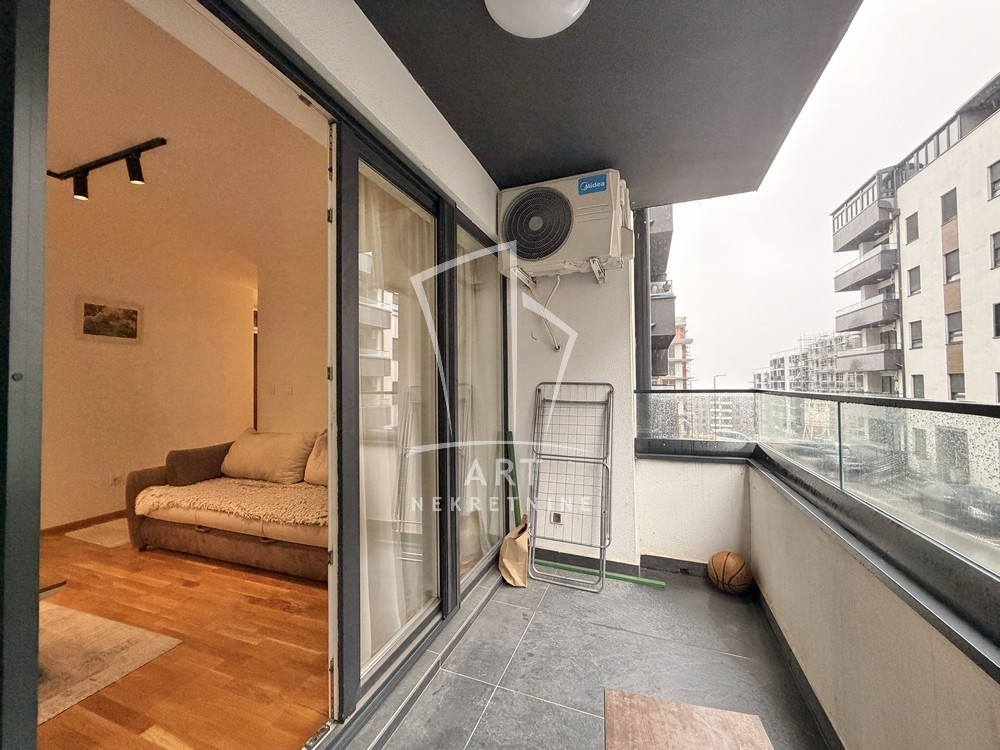 Stan je izuzetno funkcionalan, lepo opremljen i sastoji se od hodnika, kupatila, spavaće sobe, kuhinje sa trpezarijskim delom i dnevne sobe iz koje se izlazi na prostranu terasu.