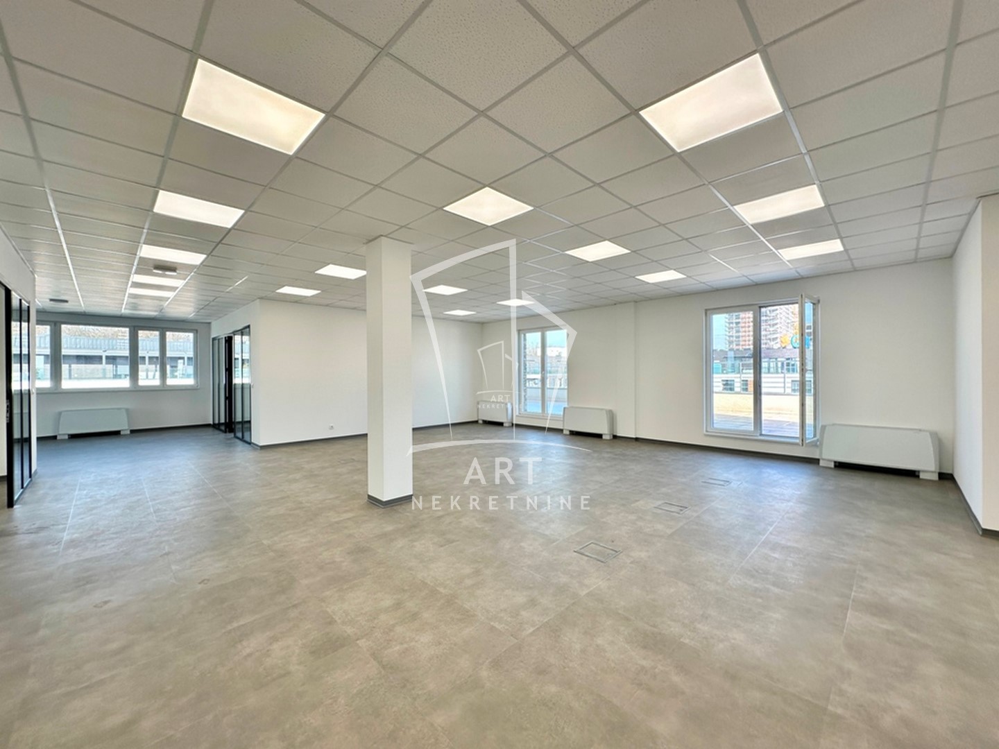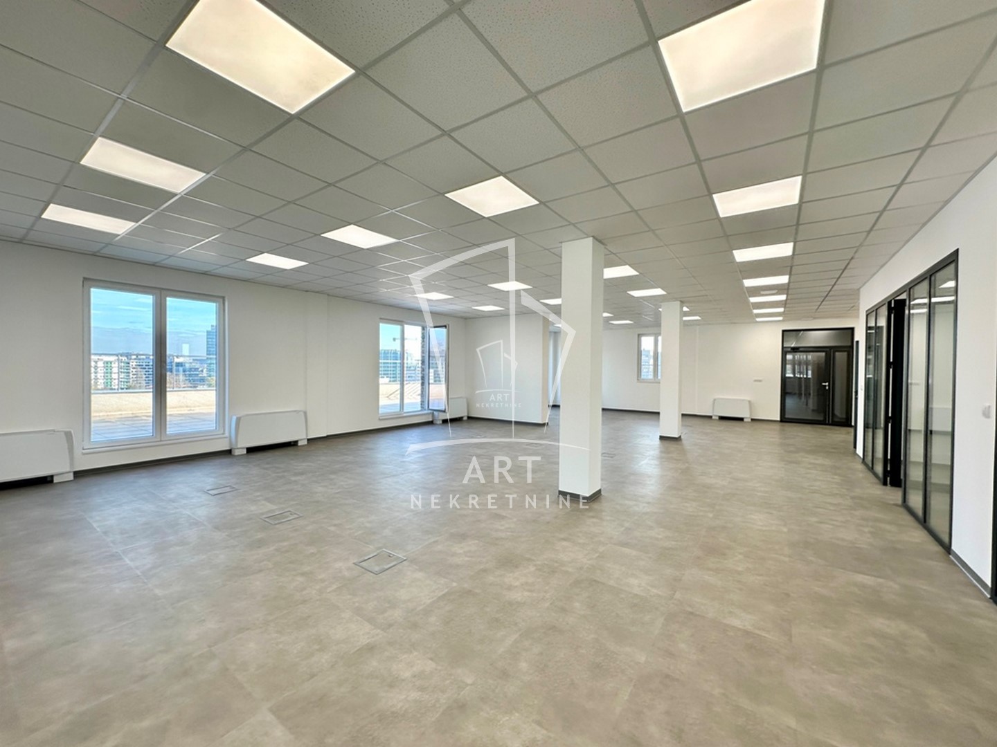 Poslovni prostor za izdavanje nalazi se u novoizgrađenoj poslovnoj zgradi visokog kvaliteta, u okviru manjeg i uređenog poslovnog kompleksa u poslovnoj zoni Novog Beograda. Lokacija obezbeđuje odličnu povezanost sa svim delovima grada, što je čini idealnom za moderne kompanije koje traže reprezentativnu i funkcionalnu poslovnu adresu. Okruženje dodatno obogaćuju druge poslovne zgrade, restorani u okviru kompleksa, kondominijumi sa brojnim lokalima komercijalnog tipa, kao i blizina javnih ustanova. Sve kancelarije imaju velike prozore koji pružaju obilje prirodnog svetla i stvaraju prijatnu radnu atmosferu. Poslovna zgrada poseduje parking, obezbeđenje, video-nadzor, ulaznu rampu i restoran koji se nalazi na 7 spratu. Grejanje i klimatizacija su rešeni putem fen-coil sistema za svaki prostor pojedinačno, dok su zajedničke komunikacije obložene protivkliznim granitom. Prostor ima mesto za kuhinju, kao i četiri toaleta. Ukupna površina prostora iznosi 434 m2, od čega je 110 m2 terasa pogodna za odmor zaposlenih ili neformalne sastanke (koja je sa 50% ušla u kvadraturu prostora). Pogodan za IT kompanije, konsalting, marketing, arhitektonske studije i druge delatnosti koje zahtevaju reprezentativan i funkcionalan radni ambijent. Ova nekretnina predstavlja savršenu kombinaciju moderne gradnje, odlične lokacije i komfora, što je čini idealnim izborom za poslovanje u Novom Beogradu. Uz prostor idu i dva parking mesta Mogućnost korišćenja modernog restorana pod povoljnim uslovima za zakupce u objektu. Mogućnost korišćenja modernog restorana pod povoljnim uslovima za zakupce u objektu.