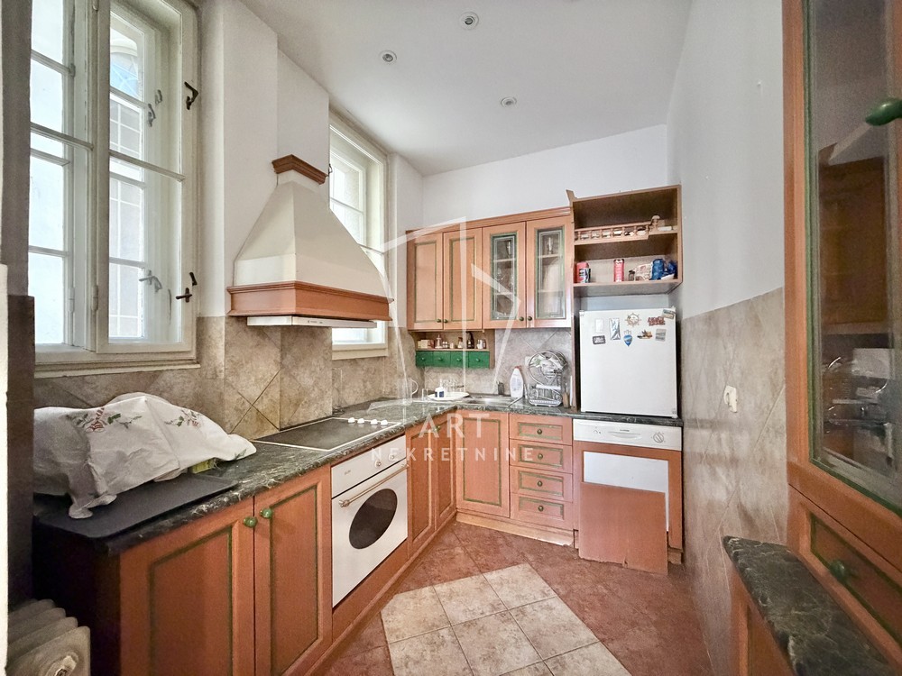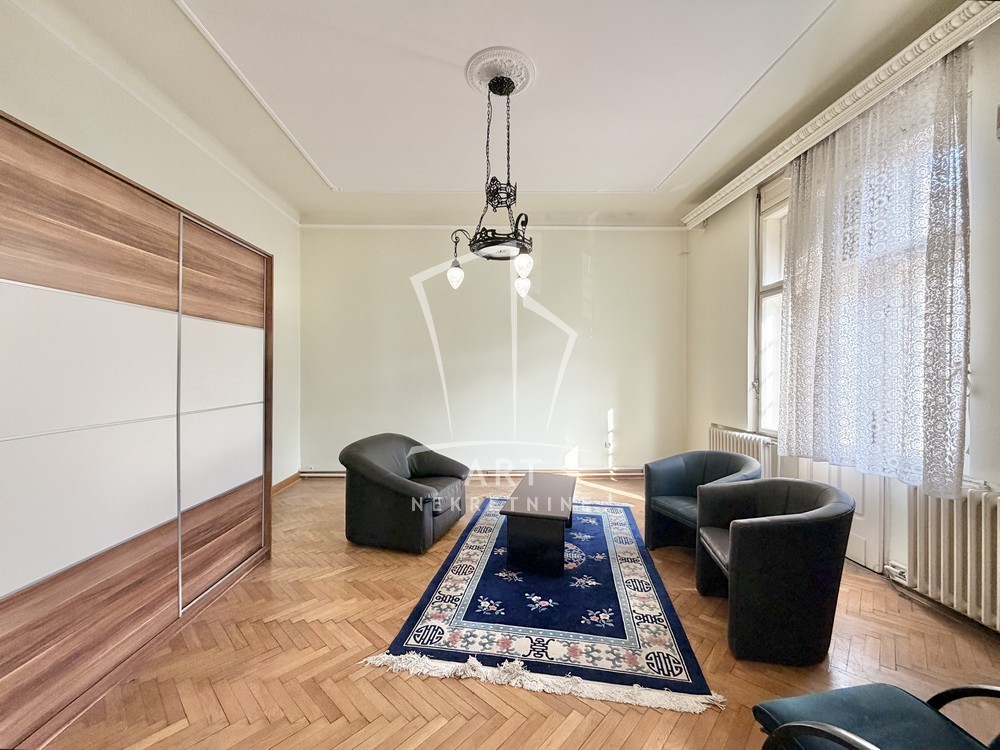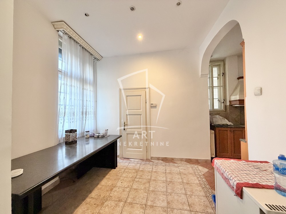 U izvornom stanju sa očuvanim elementima salonske arhitekture, visokim plafonima i prostranim sobama, trostrano orijentisan, svetao i funkcionalan, idealan kako za stanovanje tako i kao poslovni prostor.