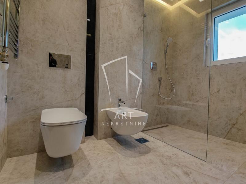 Enterijer odlikuju kvalitetni podovi pod parketom, završni radovi u kupatilu su italijanska keramika Flaviker i sanitarije italijanskog proizvodjača.