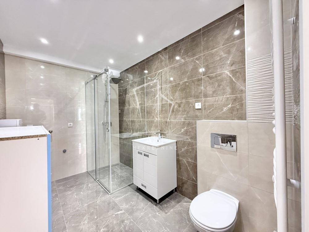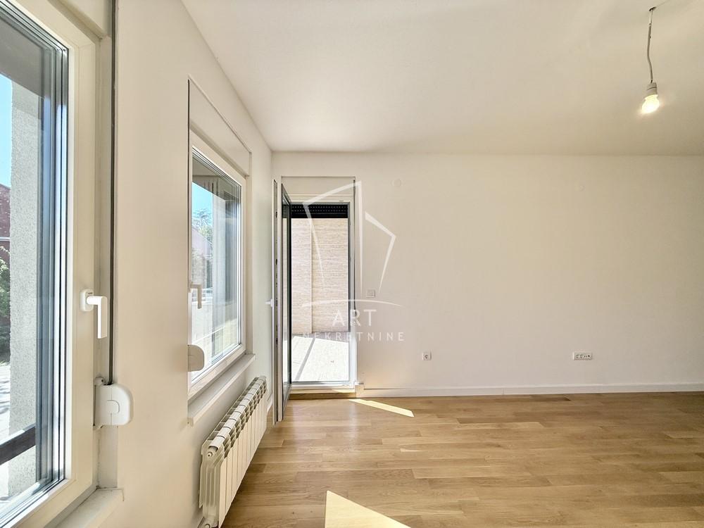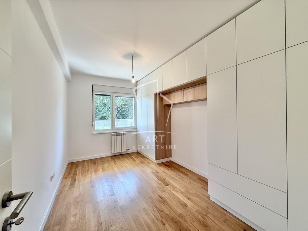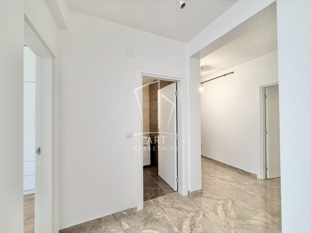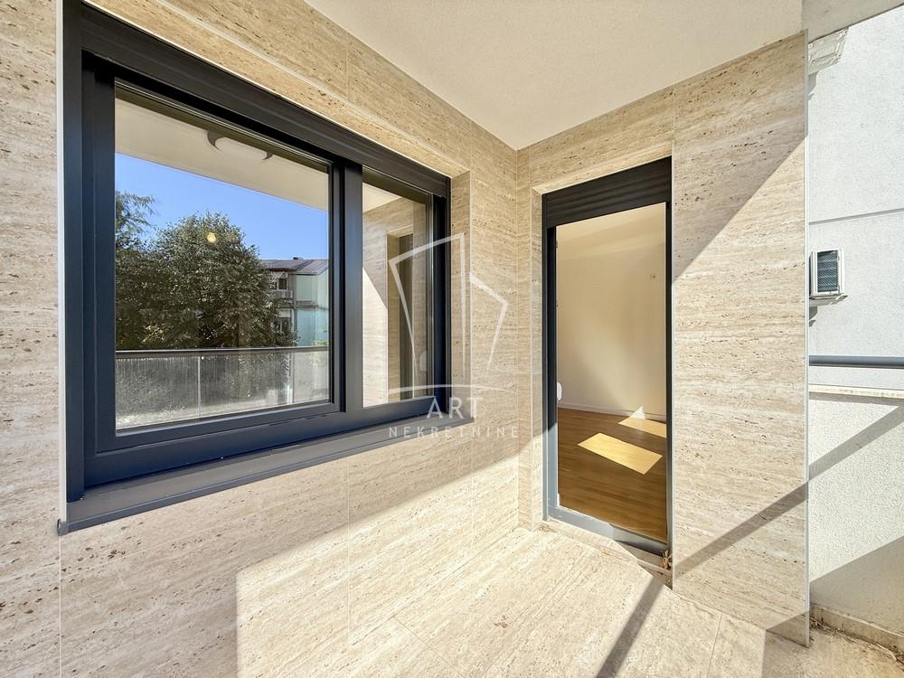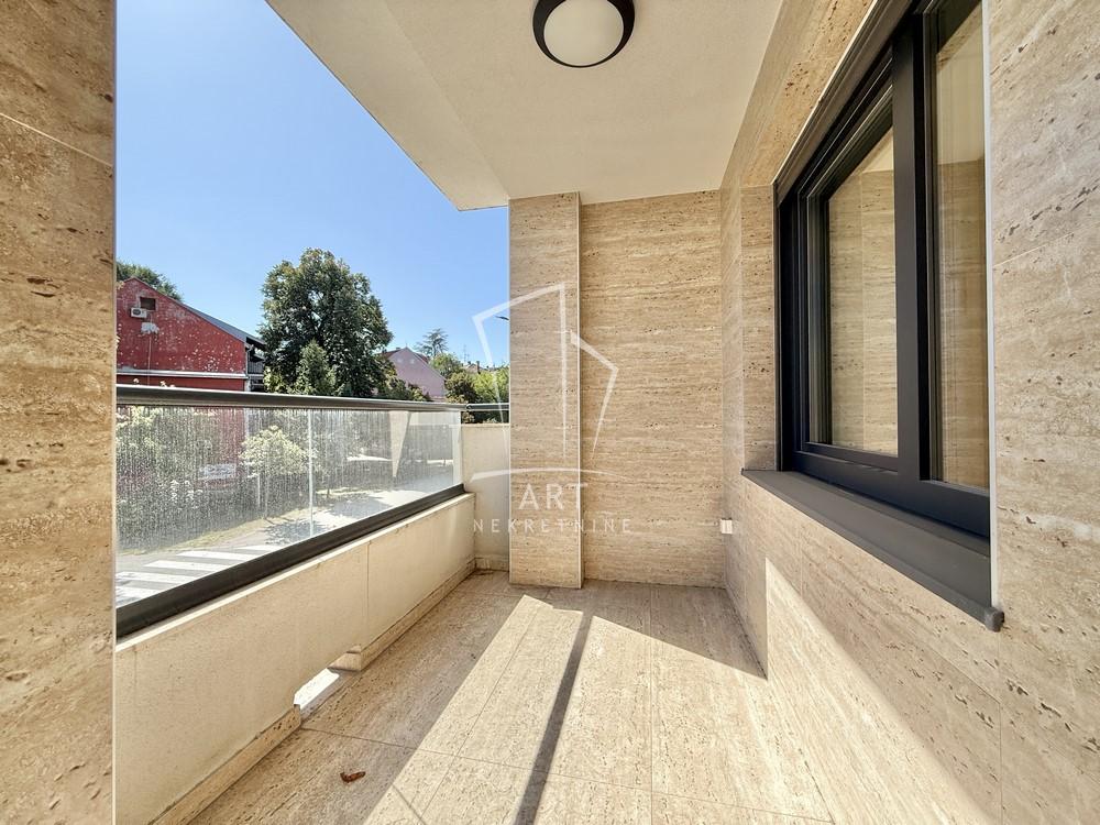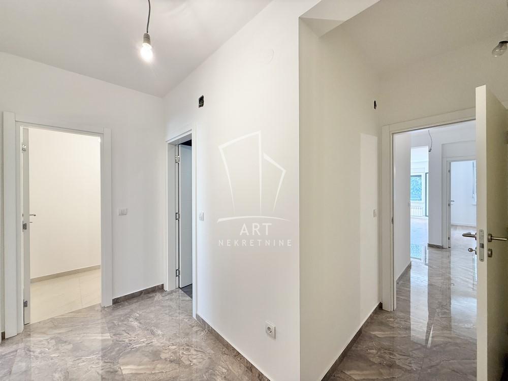 Stan se nalazi na prvom spratu zgrade koja je izgrađena od najkvalitetnijih materijala i sastoji se od ulazne zone, kuhinje sa trpezarijom i dnevnim boravkom sa koga se izlazi na terasu, dva kupatila, ostave i tri spavaće sobe a postoji i podrumska prostorija.