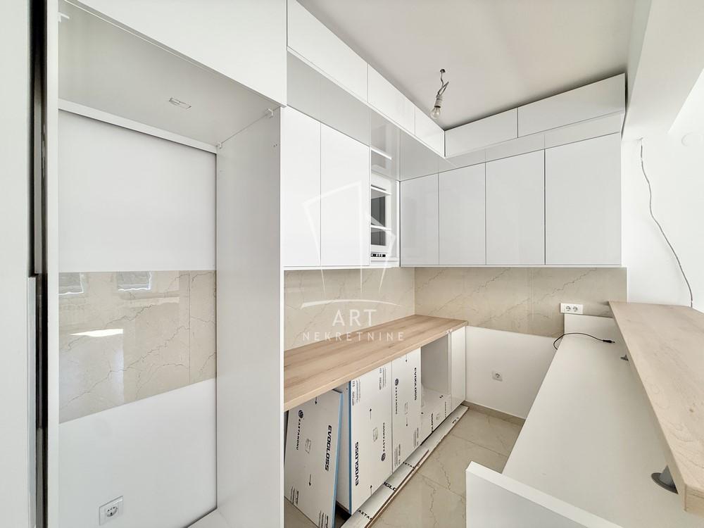 Prodaje se se sa ugradnim ormarima i kuhinjom.