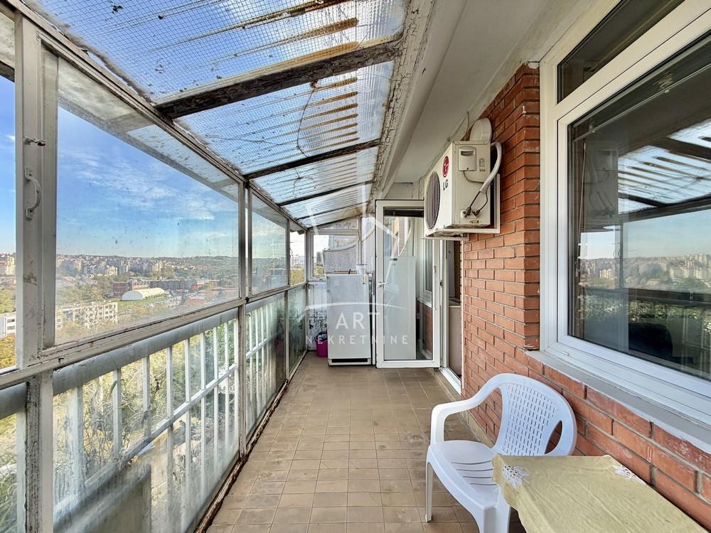 Sastoji se od dnevne sobe sa trpezarijom, kuhinje, toaleta, kupatila, dve spavaće sobe, velike zastakljene terase i lođe.