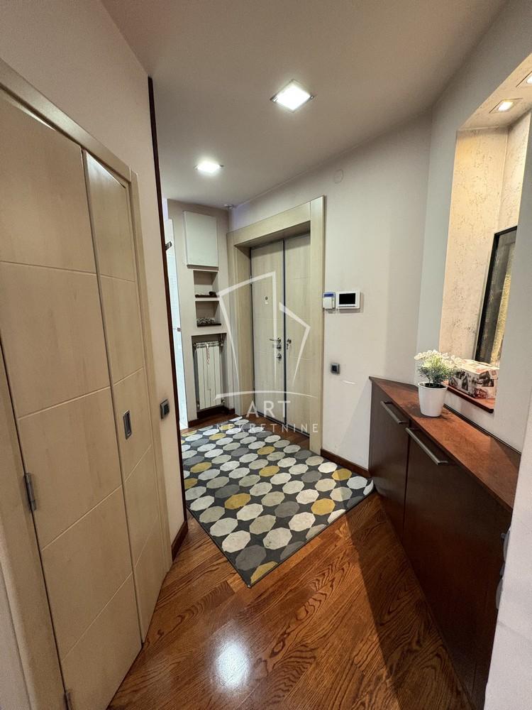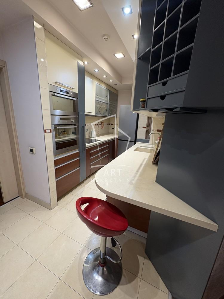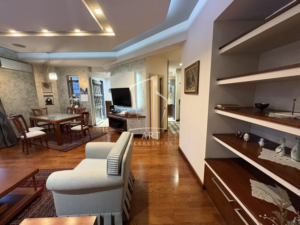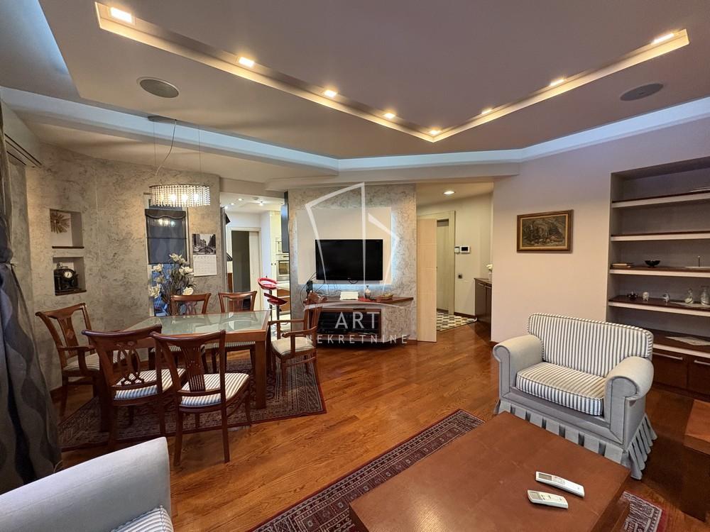 Kompletno renoviran i opremljen, sastoji se od dnevne sobe sa trpezarijom, kuhinje, spavaće sobe, dodatne manje sobe, kupatila, toaleta i dv? terase.