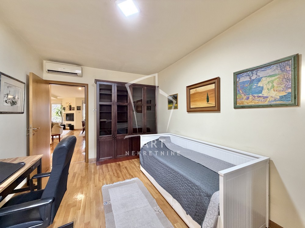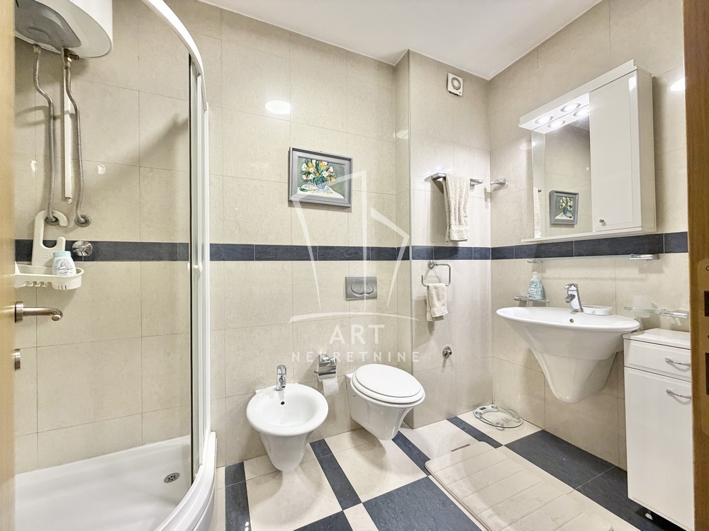 Stan je opremljen sa 3 klime, kablovskom, WiFi, muzičkom linijom, belom tehnikom u kuhinji , filter za vodu, gril toster, ketler, 2 aparata za kafu (filter, esspresso).