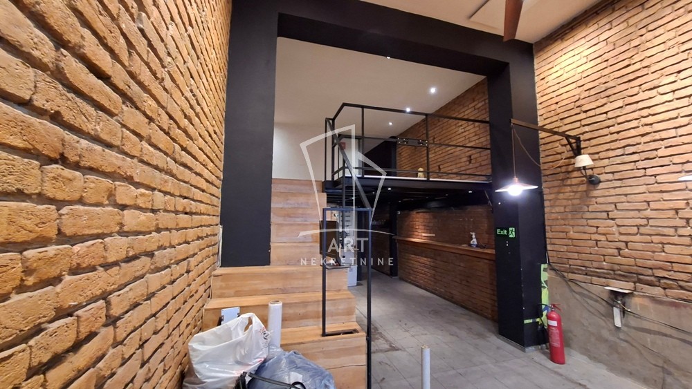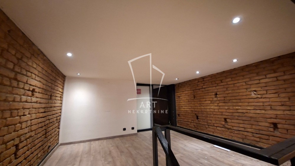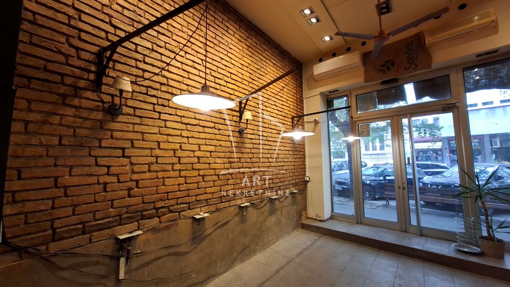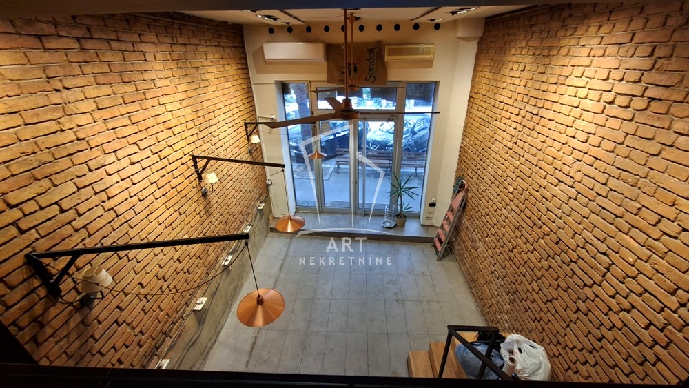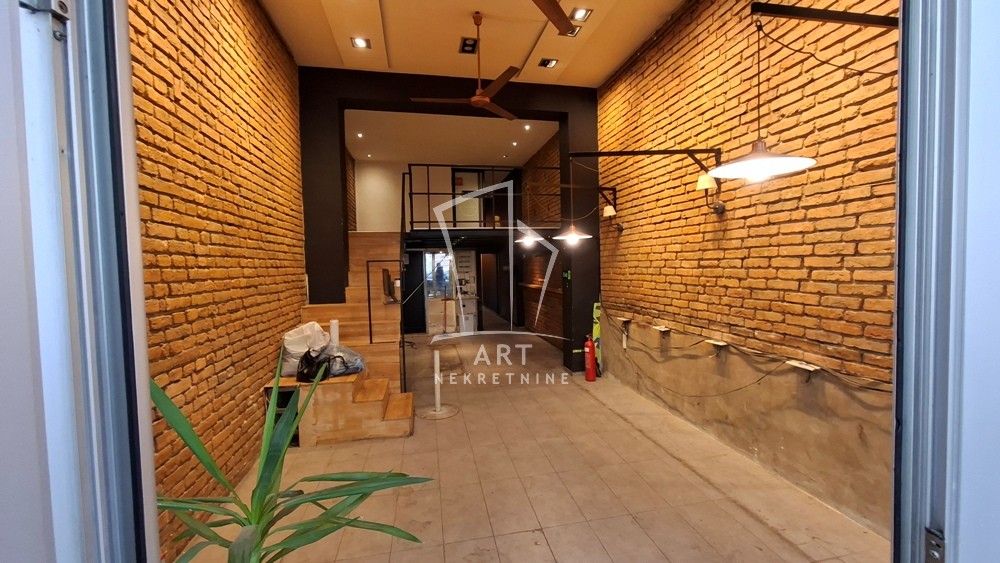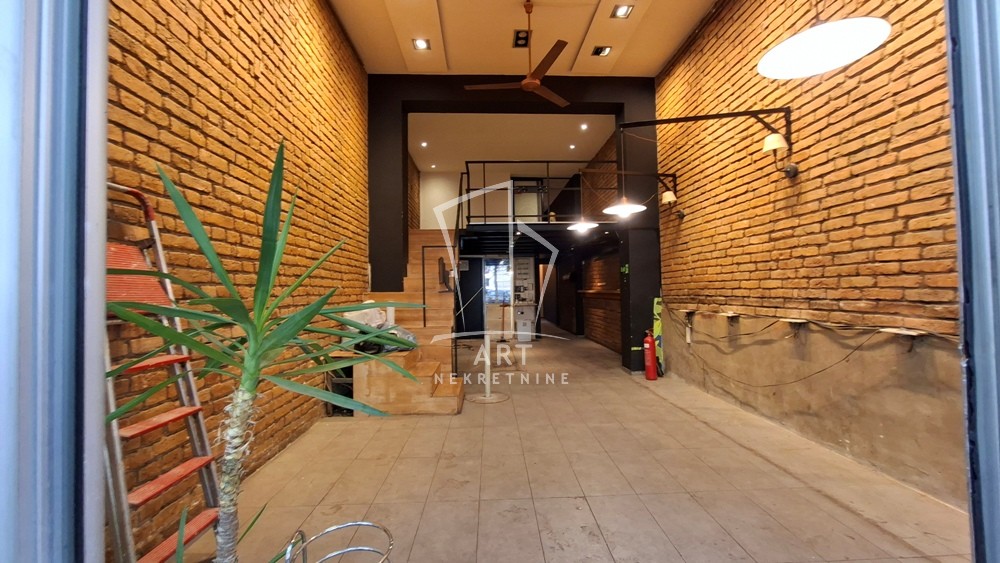 Lokal se nalazi na prometnoj lokaciji, sastoji se od prizemnog dela od 57m2 (podeljenog u dva dela) i dve funkcionalne galerije od 25m2 . Visina u lokalu je 4 metra. Postoji mogućnost pravljenja bašte ispred lokala, ima dva toaleta. Pogodan je za razne namene. Grejanje i hlađenje je pomoću klima uređaja