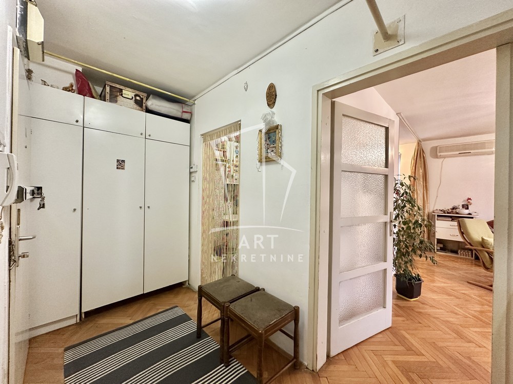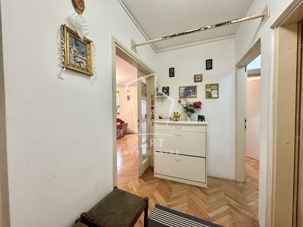 2,5 stan , 72m2 kod Tržnog centra Merkur, na odličnoj lokaciji sa svom mogućom Infrastrukturom. Stan je na drugom sratu od četiri. Sastoji se od dnevnog boravka , kuhinje trepezarija, dve spavaće sobe ,jedne terase na koju se izlazi iz dnevnog boravka i lođe na koju se izlazi iz spavaće sobe .Kupatilo I posebno posebno wc. Stan ima i podrumsku prostoriju od 4m2.Stan je istočno orjentisan.Centralno grejanje na gas.