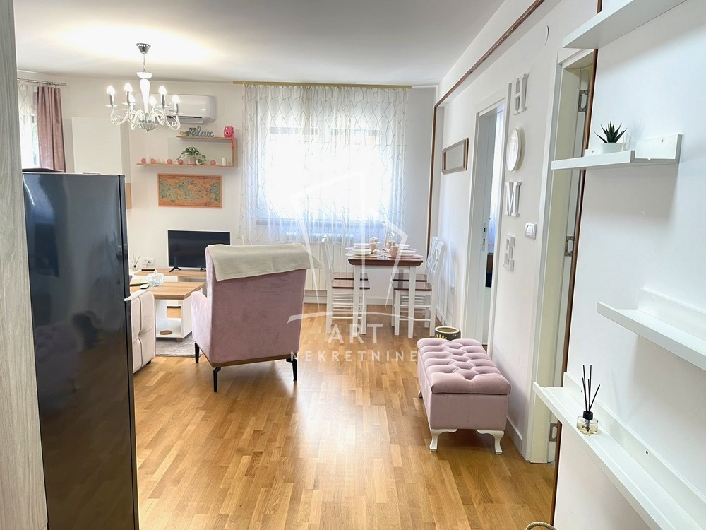 Izdaje se namešten stan u novogradnji na Karaburmi.Sastoji se iz dnevnog boraka sa kuhinjsko trpezarijskim delom,kupatila i spavaće sobe.Mesečni troškovi niski,grejanje je etažno.Mikrolokacija dobra,blizina Bogoslovije,Big šoping centra,osnovne škole,vrtića,brojnih marketa.Odlična povezanost javnim prevozom sa svim delovima grada.Slobodan parking ispred zgrade.Kućni ljubimci nisu dozvoljeni.