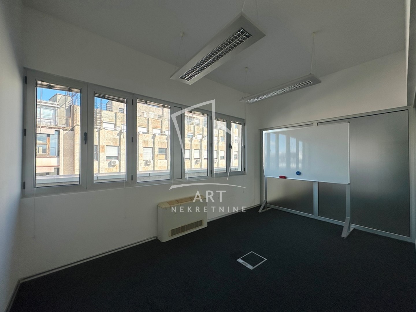 Izdaje se Idealan kancelarijski prostor na savršenoj lokacii. Prostor se nalazi u odličnoj poslovnoj zgradi sa fizičkim obezbeđenjem I video nadzorom, sastoji se od 9 kancelarija, toaleta , opremljene kuhinje sa trpezarijom I terase. Izuzetno je svetao I funkcionalan. Postoji mogućnost povećavanja ili smanjivanja broja kancelarija , pošto je prostor dvostrano orjentsan I dosta svetao.U cenu su uključeni svi troškovi. Cetralno grejanje I centralna klimatizacia. Odličan prostor za moderno poslovanje.