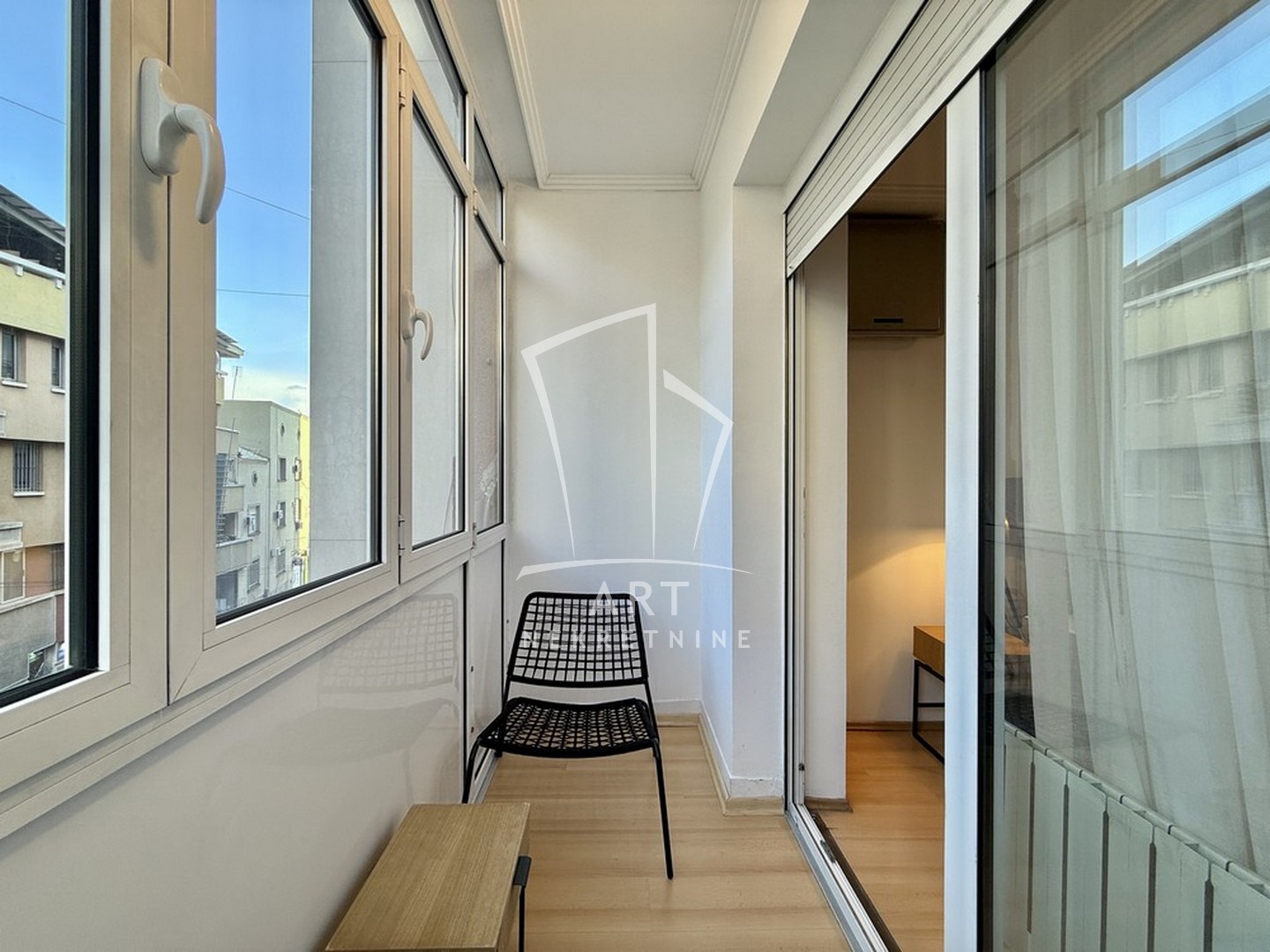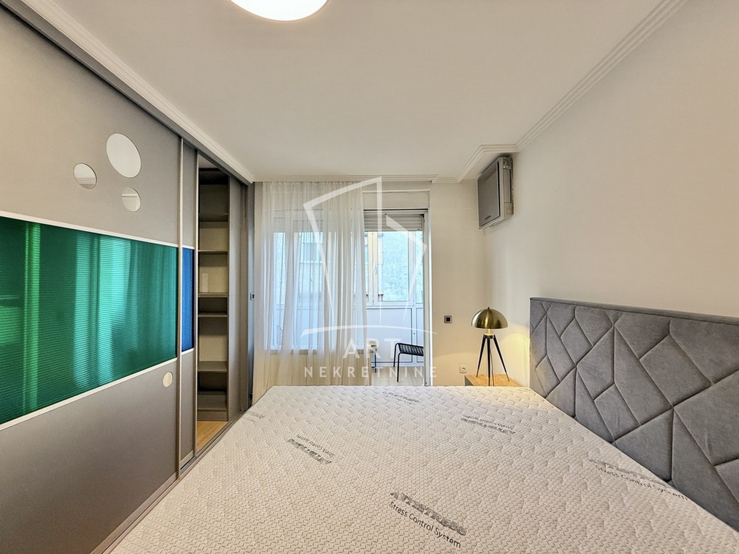 Stan se sastoji od ulaznog hodnika,svetlog i prostranog dnevnog boravka sa trpezarijom i pogledom na dvorište,prostrane spavaće sobe iz koje se izlazi na zastakljenu terasu,prostrane kuhinje i toaleta.Sva tehnika i nameštaj u stanu su potpuno novi i nekorišćeni.