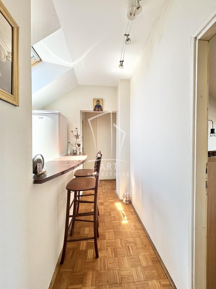 Stan se nalazi na poslednjem spratu održavane zgrade sa liftom i sastoji se od velike dnevne sobe, tri spavaće sobe, ostave, kuhinje i kupatila.