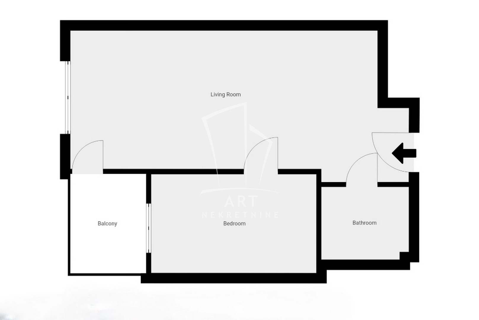 Sastoji se od dnevne sobe sa kuhinjom, spavaće sobe, kupatila i terase.