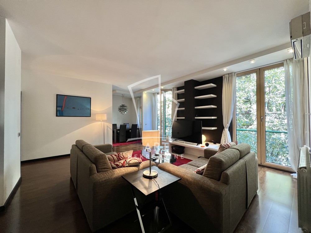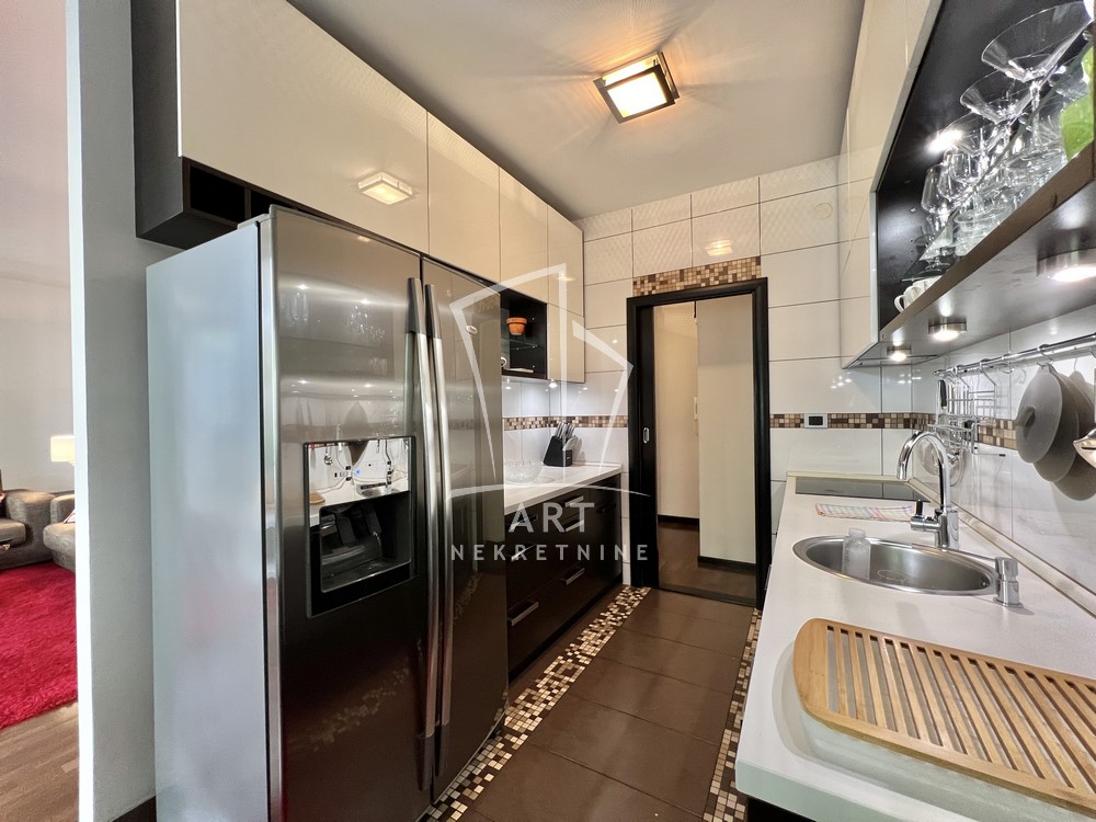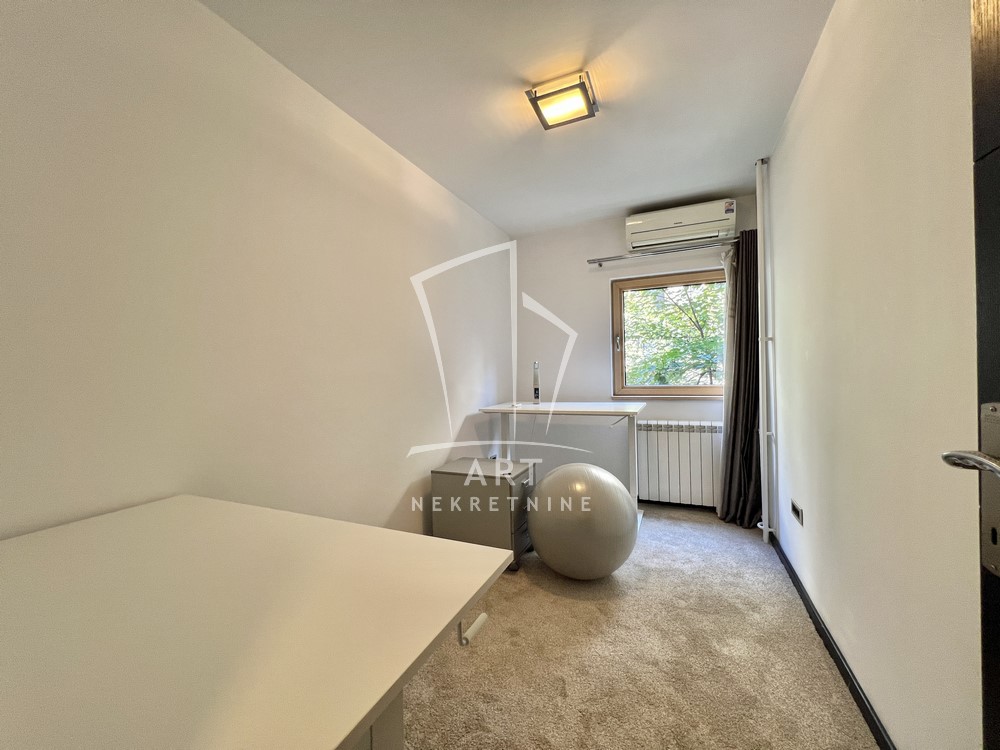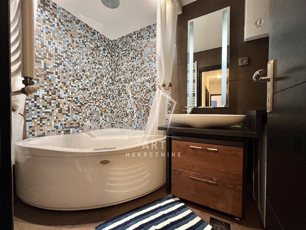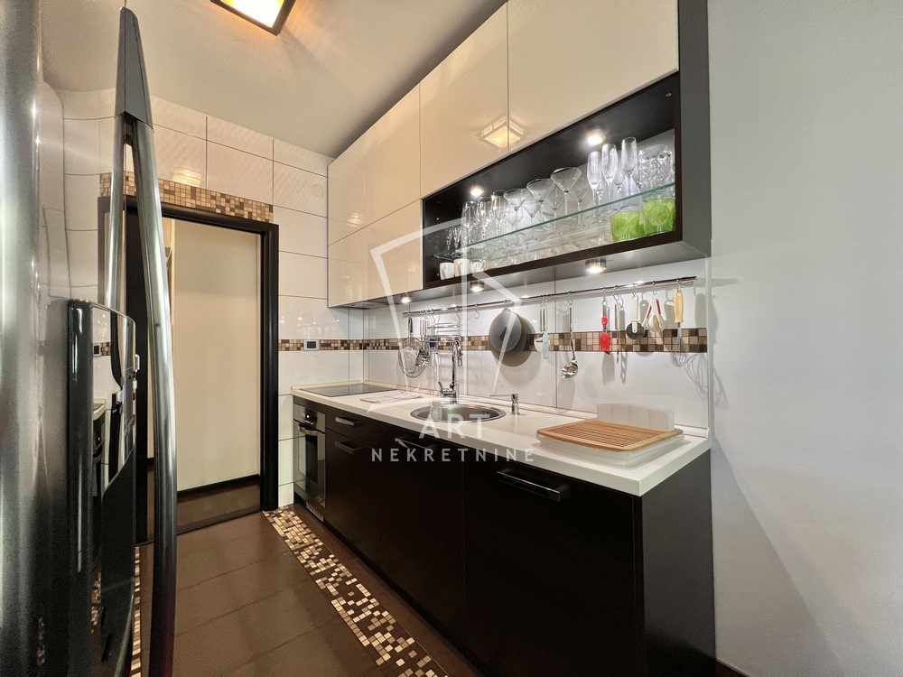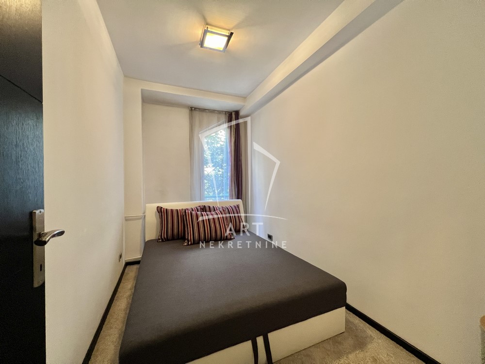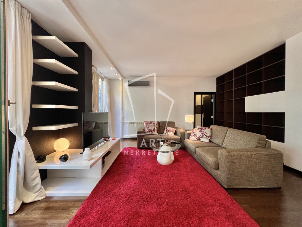 Izdaje se lux stan u centru grada na samo nekoliko minuta hoda od Narodnog pozorista. Stan se sastoji od velikog dnevnog boravka sa kuhinjom i trpezarijom, hodnika sa prostorom za odlaganje stvari, tri spavace sobe i kupatila i toaleta. Na krovu zgrade nalazi se zajednicka terasa. Stan je renoviran i kompletno je namesten.