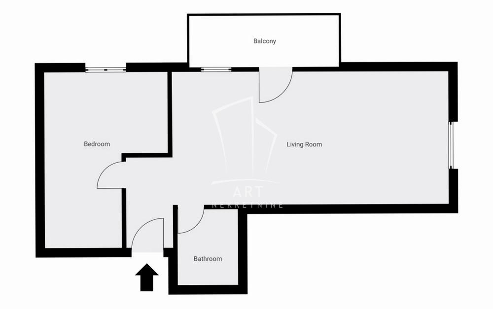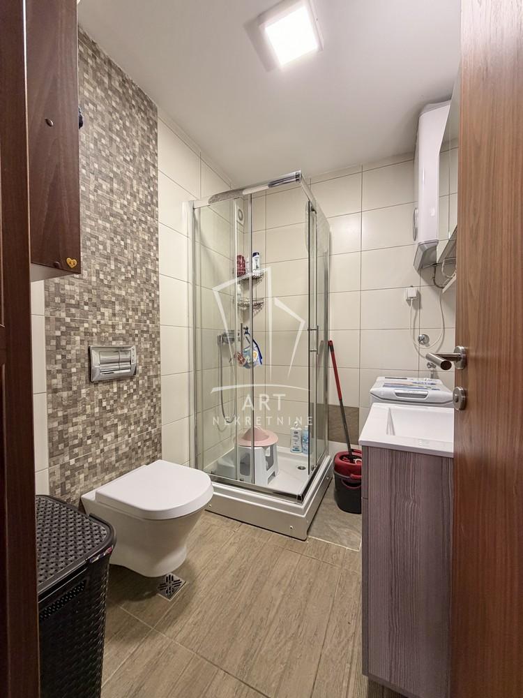 Prostorije: predsoblje, spavaća soba, kupatilo, kuhinja sa šankom, dnevna soba, terasa.