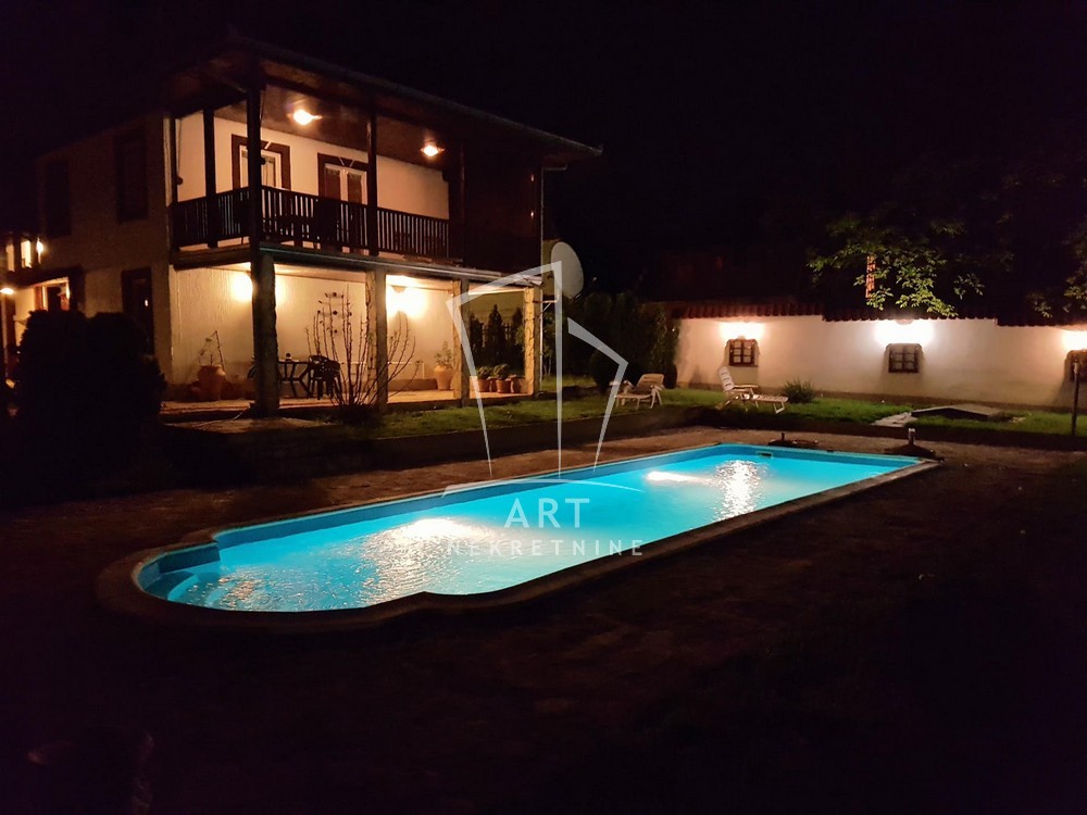U sređenom dvorištu nalazi se luksuzan bazen 9,5x3x1,5 sa grejačem,LED rasvetom u boji i kompletnom Astral opremom.