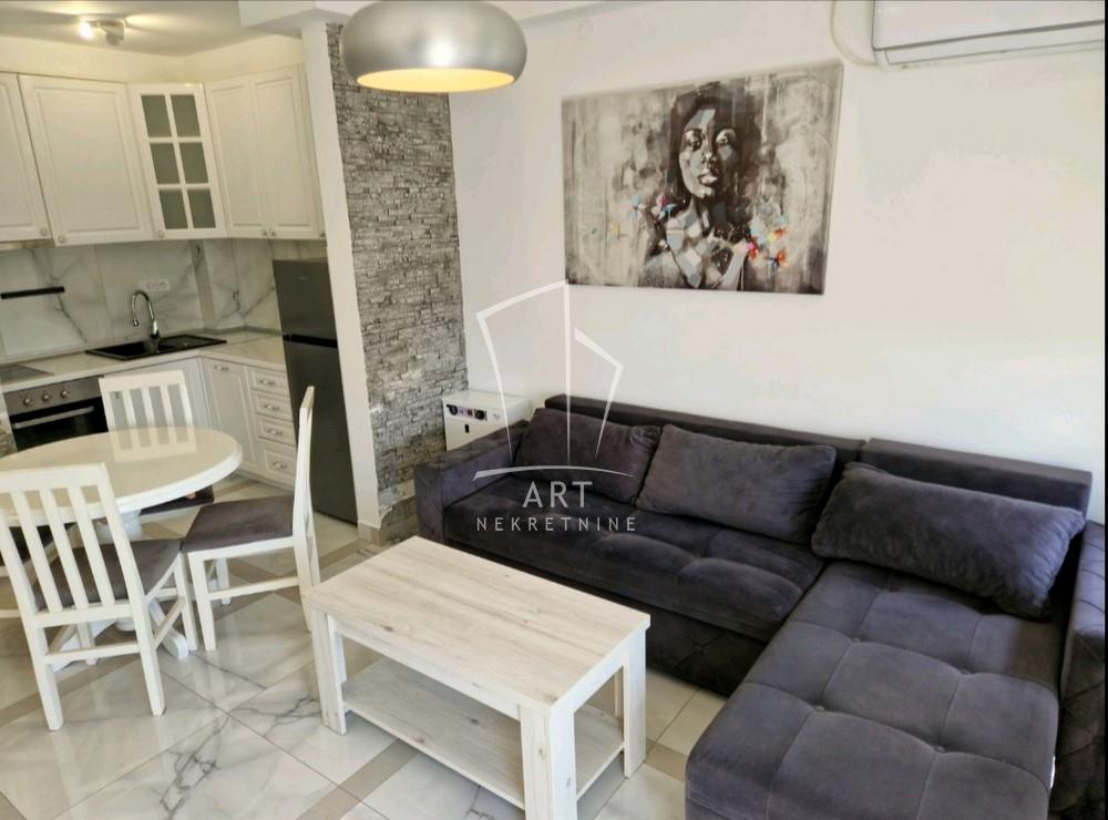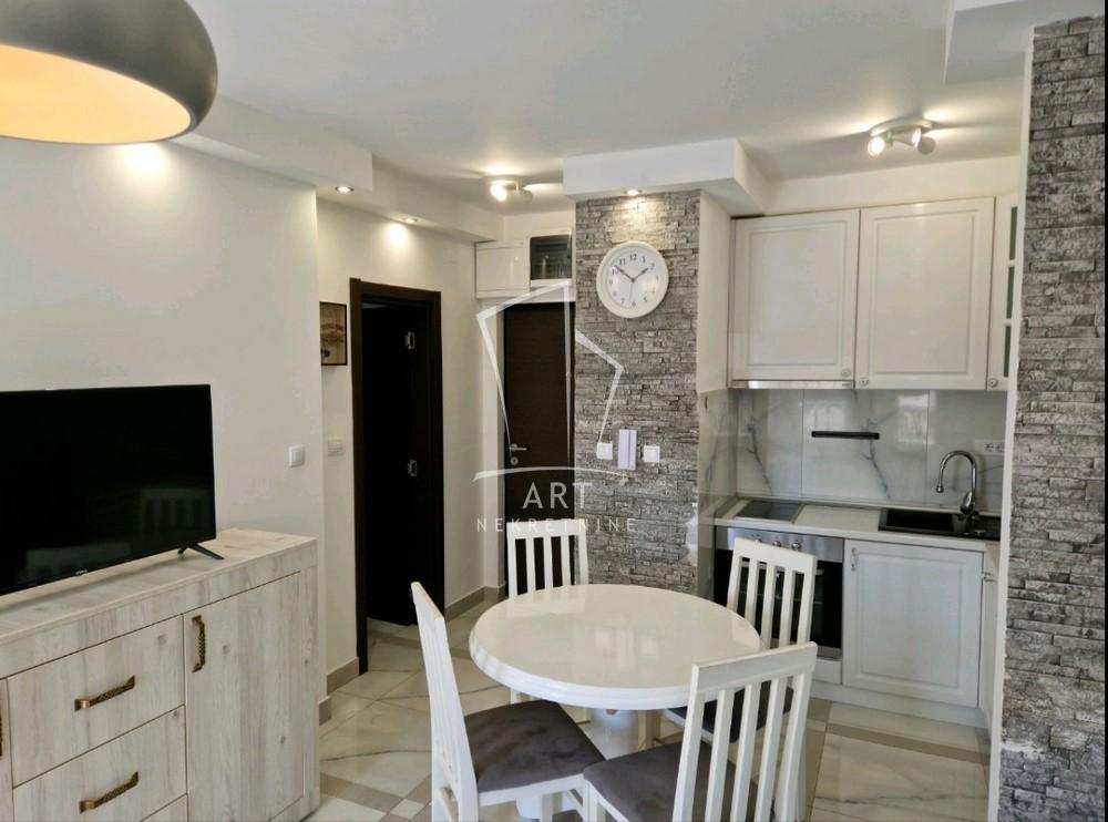 Raspored je veoma funkcionalan: dnevna soba sa kuhinjom i trpezarijom, spavaća soba, kupatilo i terasa.