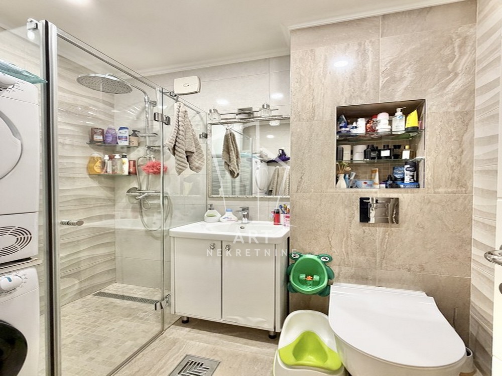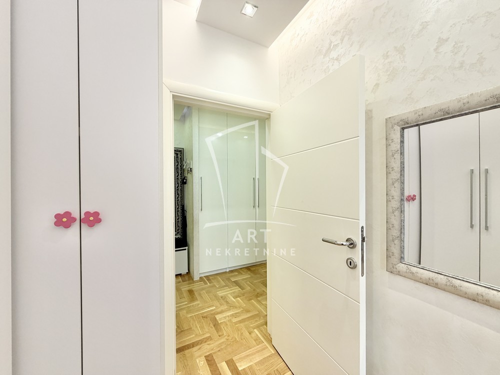 U potpunosti renoviran, vodovodne i strujne instalacije, unutrašnja i spoljna stolarija, kvalitetan parket. Stan je renoviran za potrebe porodice i kao takav je bez ulaganja.