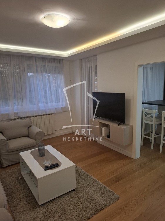 U blizini Filmskog Grada ulica Zivana Saramandica izdaje se prelep,skoro renoviran stan komletno opremljen novim stvarima.Stan je dvostrano orjentisan sa divnim pogledom na park i sastoji se od dnevnog boravka sa izlazom na terasu,trepezarije,kuhinje sa ostavom,spavace sobe i kupatila.