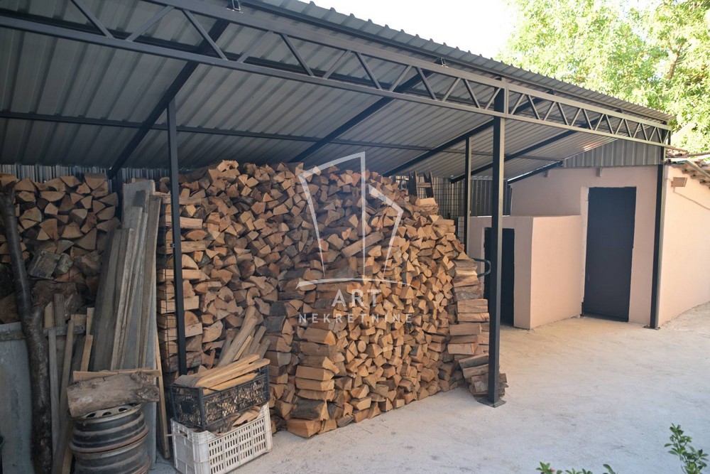 Dvorište je funkcionalno organizovano s parkingom i tremom u prednjem delu, dok se u zadnjem nalazi pomoćni objekat površine 23m2, sastavljen od čelične konstrukcije od 16m2 i ozidanog dela od 7m.