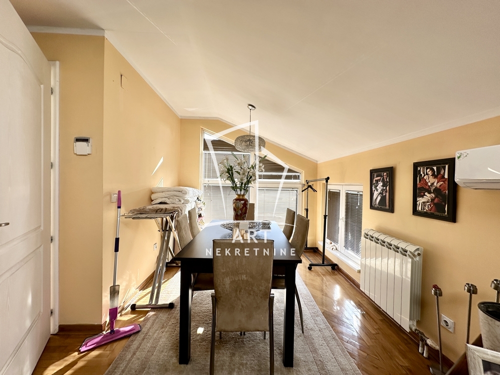 Kuća je vrhunskog kvaliteteta. Sastoji se od dva stana i jednog apartmana za goste, kao i velike terese sa lepim pogledom.