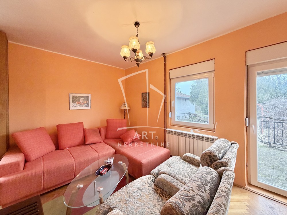 Kuća se nalazi na 17,37 ari placa , uvučena u zadnji deo dvorišta , okružena zelenilom i pogledom na reku Dunav.