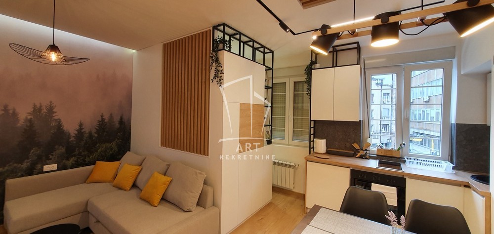 Kompletno rekonstruisan i lux opremljen jednosoban stan, površine 31 m2 u samom centru grada kod Skadarlije. Potpuno je namešten, savršeno funkcionalan i posebnog stila, sa dosta dnevne svetlosti, i opremljen svim neophodnim elementima za udoban i kvalitetan život. U srcu grada, na odličnoj lokaciji, stan je okružen svim sadržajima koje nudi grad Beograd.