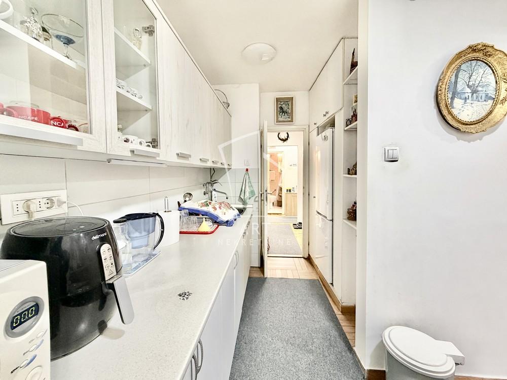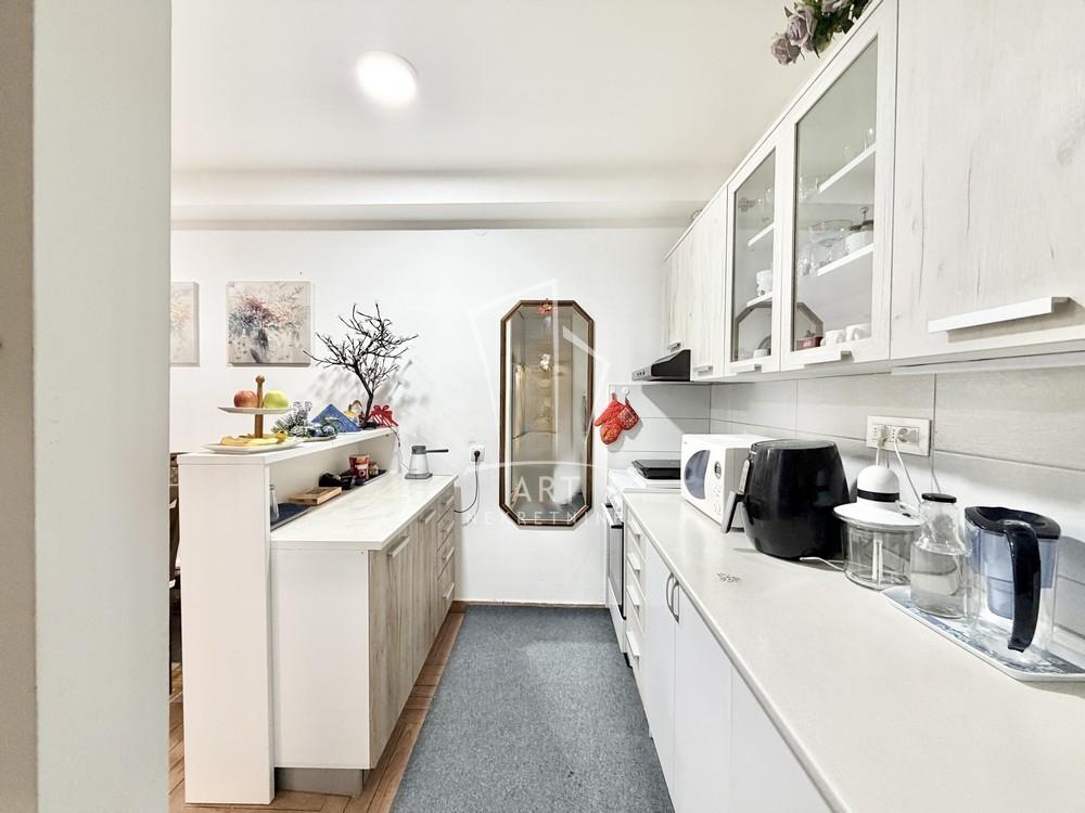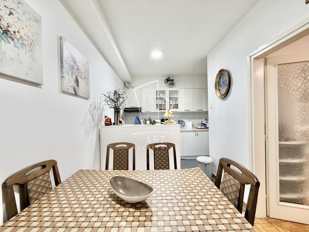 Prostorije: predsoblje, kupatilo, spavaća soba, dnevna soba, kuhinja, trpezarija, terasa, podrum.