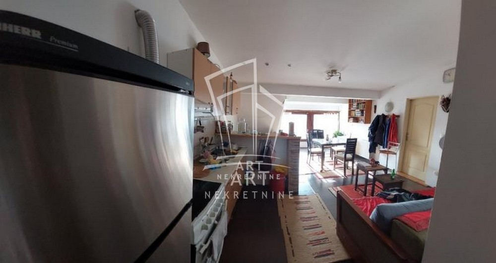 Open space- kuhinja, trpezarija i dnevna objedinjene, i 2 spavaće sobe, komotno kupatilo.