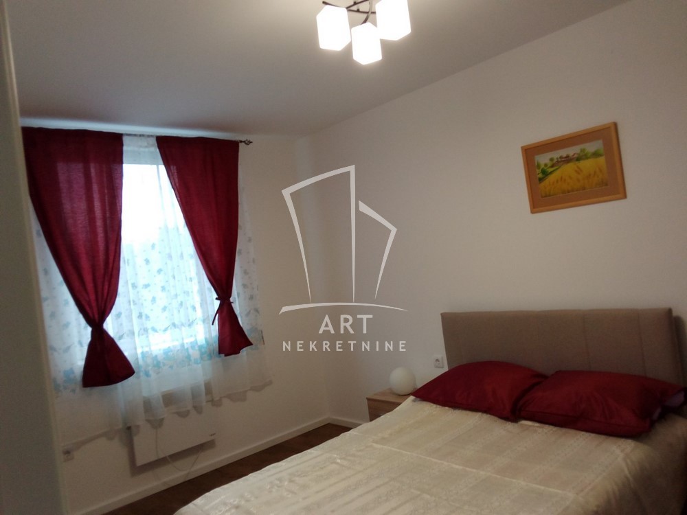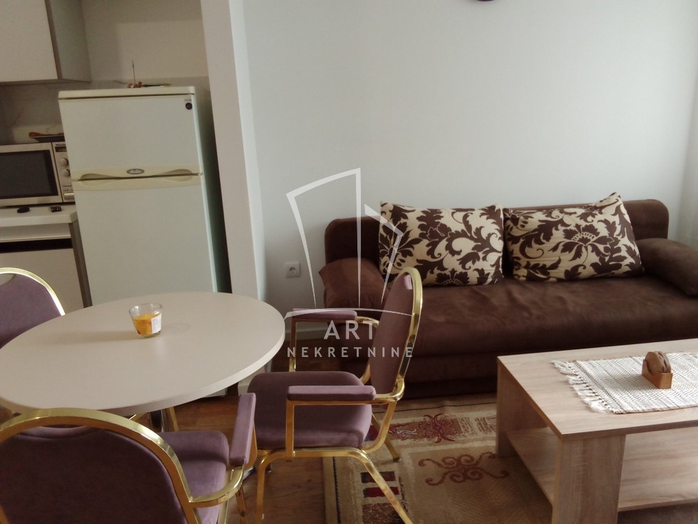 Lep, komforan stan u zgradi novijeg datuma. Dnevni boravak, kuhinja, trpezarija, sve otvorenog koncepta, spavaća soba odvojena. Kupatilo prostrano sa tuš kabinom.
