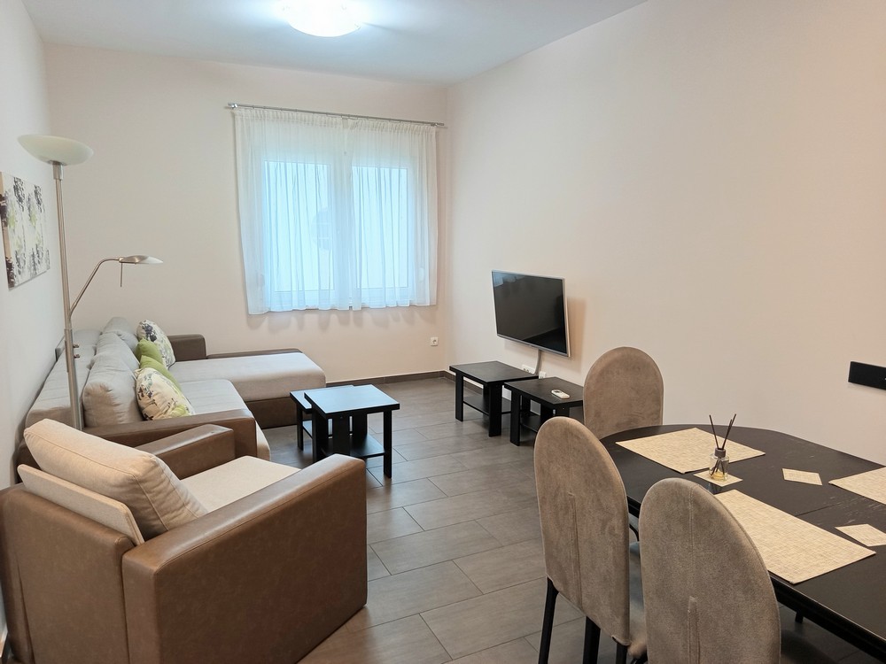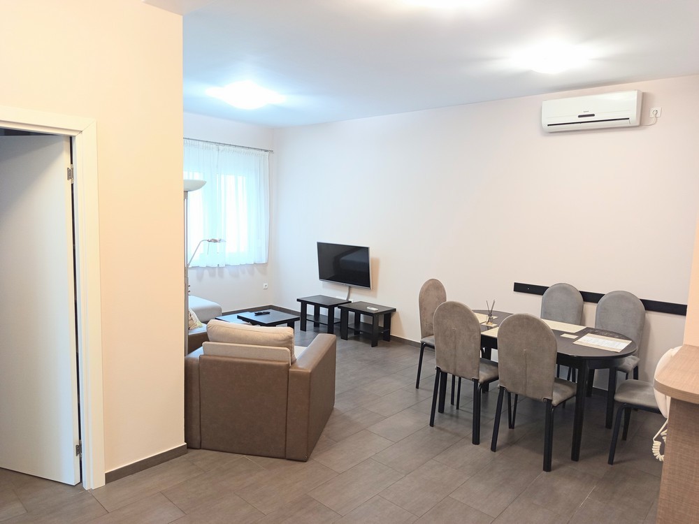 Stan se sastoji od hodnika, prostranog dnevnog boravka sa trpezarijom, kuhinjom sa svim aparatima, dve prostrane spavaće sobe, kupatila i lepe terase.