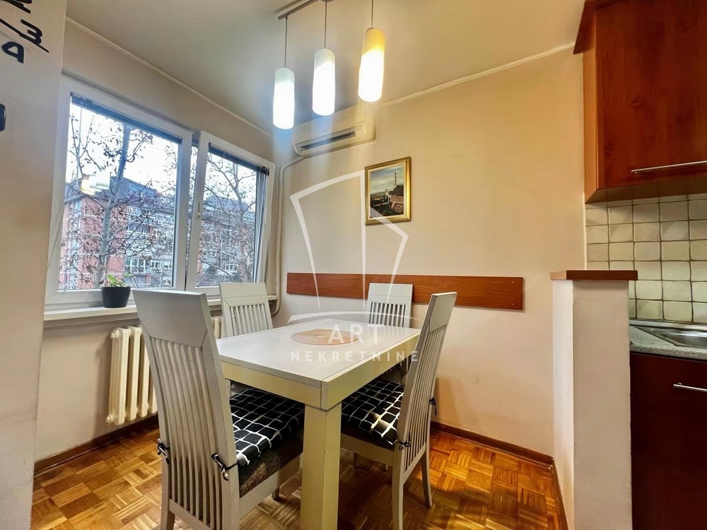 Komplentno opremljen, trosoban stan na odličnoj lokaciji. Renoviran, opremljen kvalitetnom tehnikom, svetao I izuzetno komforan.