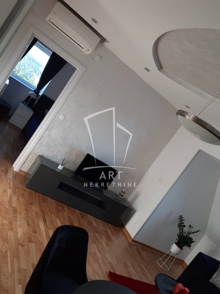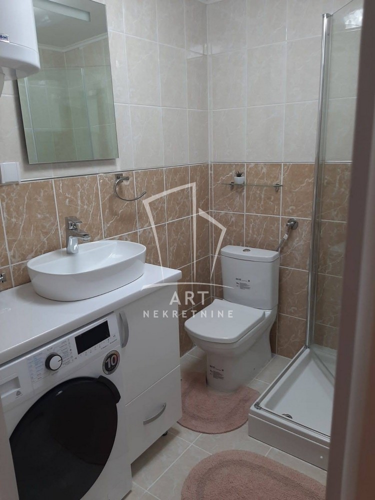 Potpuno je namešten i kompletno opremljen novom tehnikom. Poseduje mašinu za pranje veša, mašinu za sudove i mnogo prostora za odlaganje. Raspored čine dnevni boravak sa kuhinjom i trpezarijom, spavaća soba i moderno kupatilo.