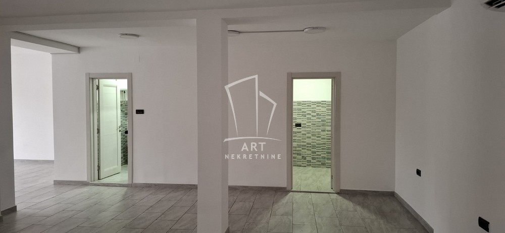 Izdaje se renoviran poslovni prostor od 105 m2 u porodičnoj kući u starom delu Bežanije, na izuzetno prometnoj lokaciji u Vojvođanskoj ulici (pravac ka autoputu "Miloš Veliki"). Prostor ima direktan prilaz i mogućnost kratkotrajnog parkiranja ispred, što olakšava utovar i istovar robe i čini ga praktičnim za klijente i isporuke.